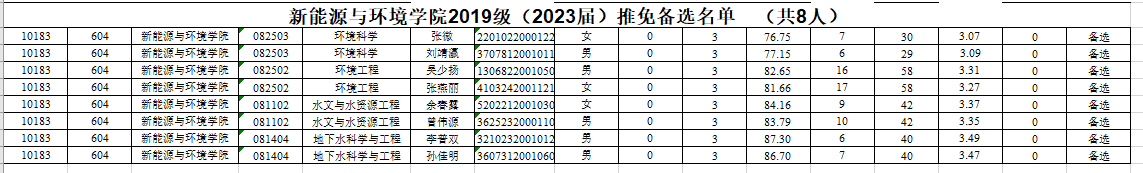 按学校和学院推免政策规定,结合各专业指标分配方案,现将2019级(2023届)应届本科毕业生免试攻读研究生名单进行公示,本次获推荐资格者共38人,不符合推荐资格的8人列为备选。