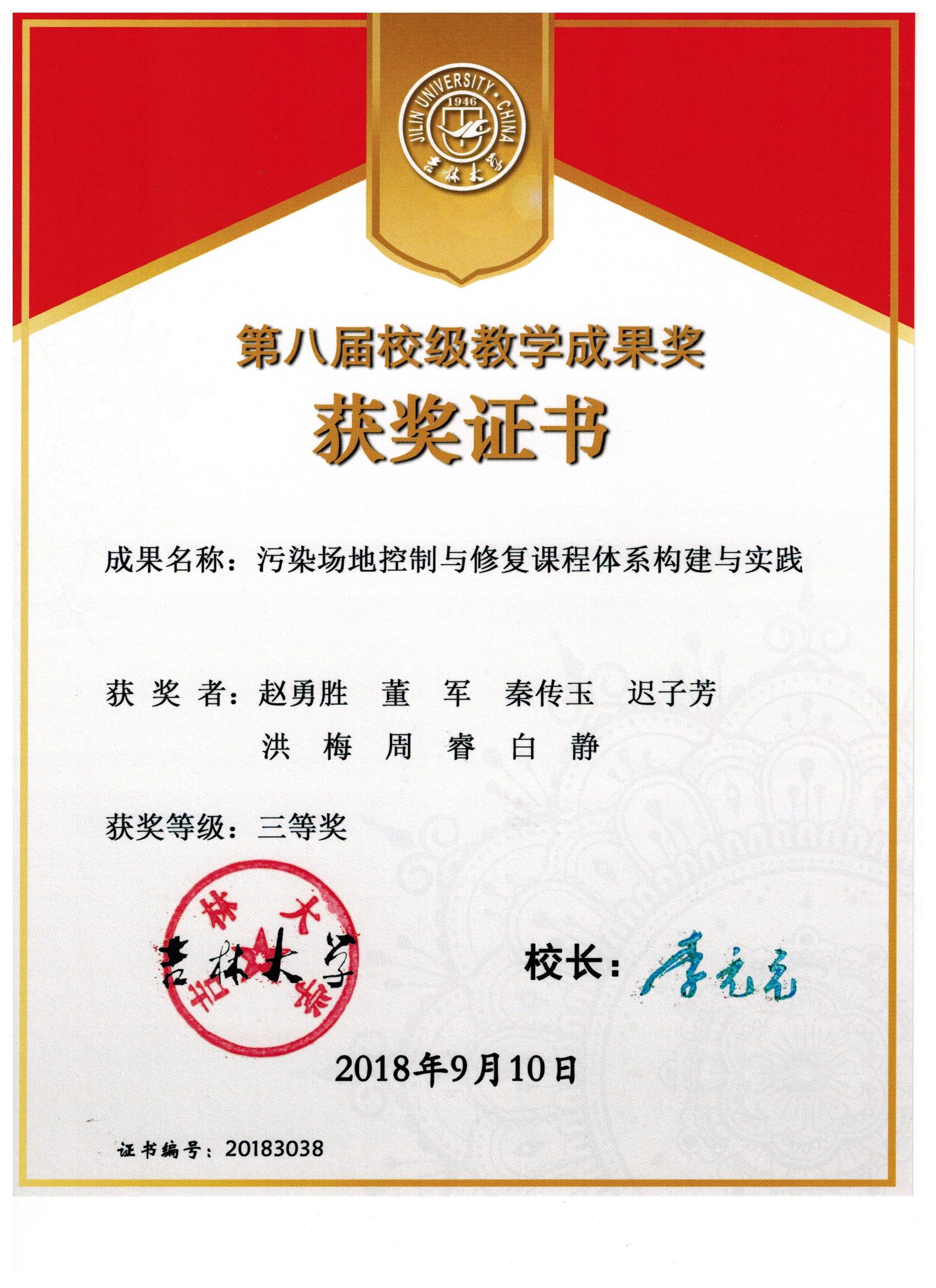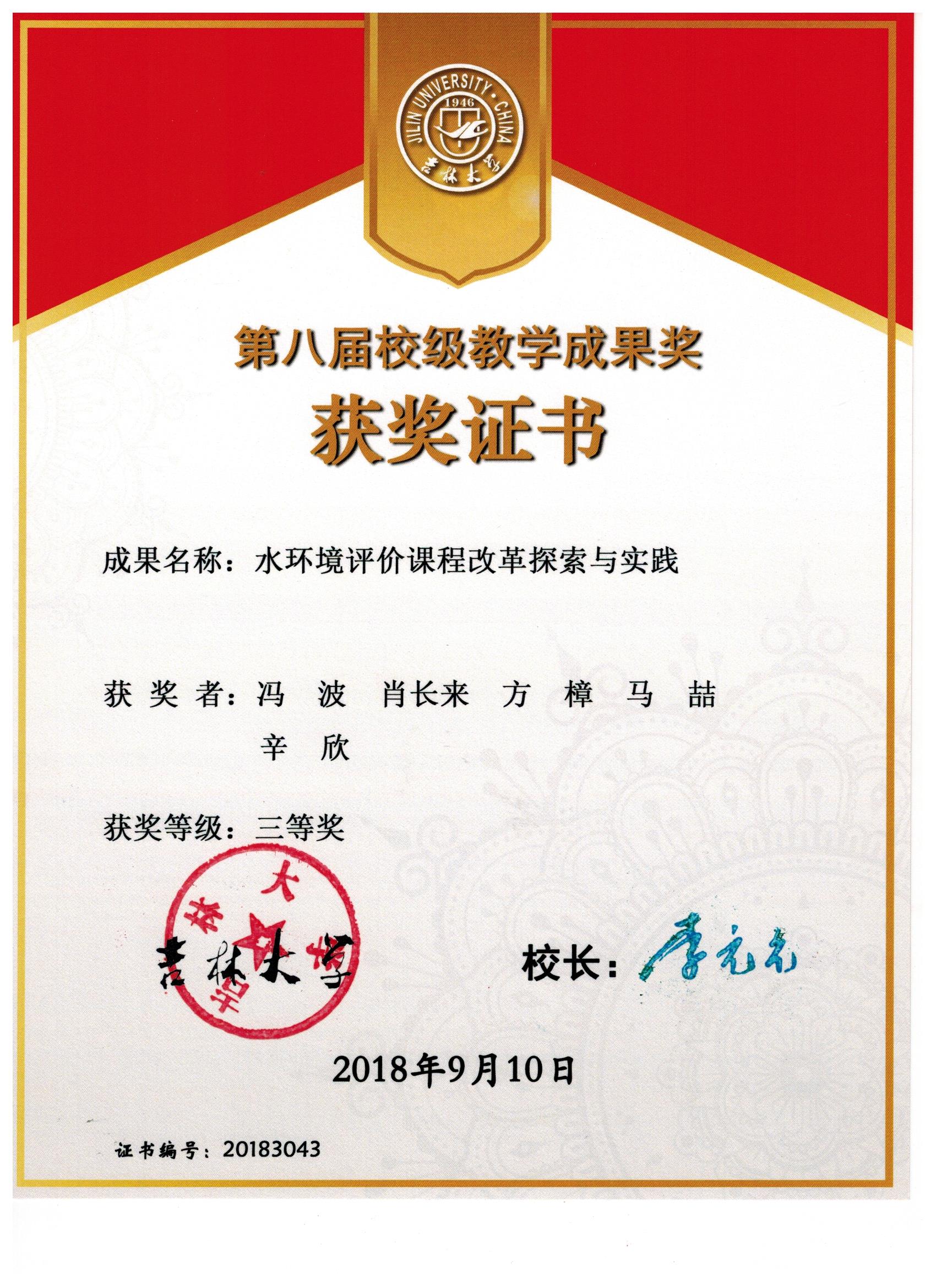 获奖人员:肖长来、赵勇胜、王宪恩、梁秀娟、邹东雷、方 樟、张 博