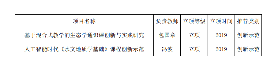 2019年一色 本科“创新示范课程”建设项目