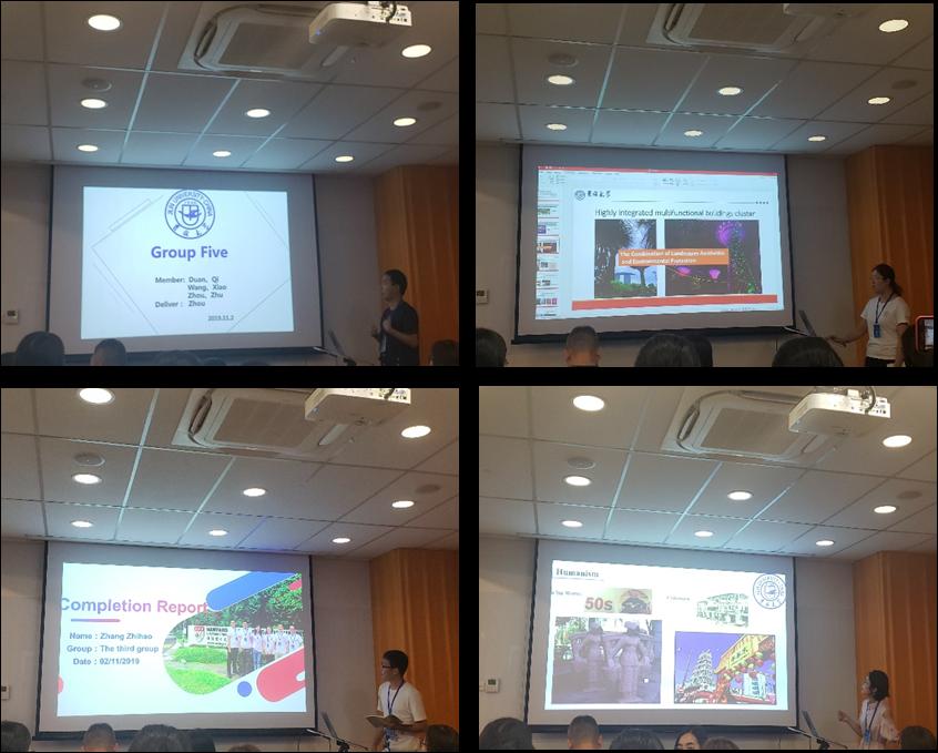 交流分享会后,同学们以小组的形式对此次新加坡之行进行了英文总结汇报。同学们邀请到了范红金副教授做评委为同学们的汇报提出意见和建议。同学们经过为期8天的学习,对新加坡的水资源和环境现状有了系统地了解,特别是水的来源、海水淡化技术、新生水处理技术以及永续发展的理念与实践,完整地了解了新加坡宏观水利工程以及生产生活废水的微观处理过程。虽然英文的报告对于大部分同学来说比较生疏,但也极大地锻炼了同学们的能力。在五组汇报完毕以后,范教授对大家的表现进行了点评,并为每一位同学颁发了“一色
