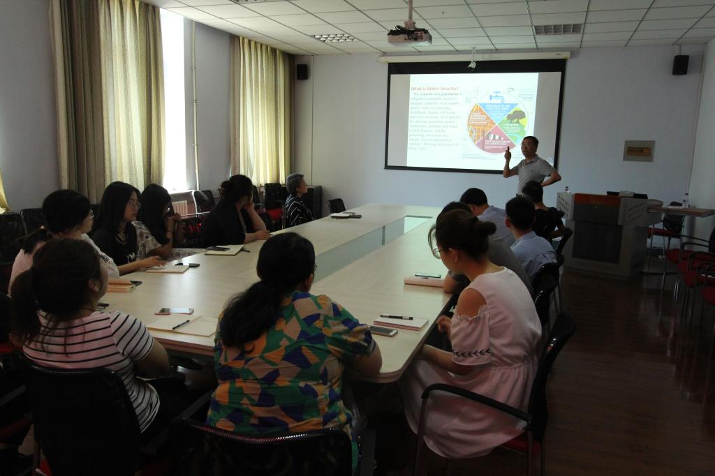 师生作题为 “Achieving Water Security in the Context of Food-Energy -Water Nexus : from Exhortation to Action” 学术报告。此学术报告由地下水科学与工程系李鸿雁教授主持,在报告会上,蔡喜明教授阐述了水环境安全管理的相关研究,以全新的食物-能源-水环境科研体系为新能源与环境的师生拓宽了科研思维。师生们对蔡喜明教授的研究课题表示很感兴趣,并与蔡教授就水环境安全问题进行了深入探讨,收获颇丰。