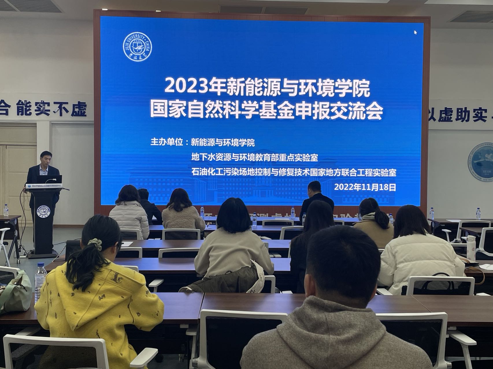副院长卞建民教授、环境工程系主任张大奕教授进行基金申请交流的讲座。