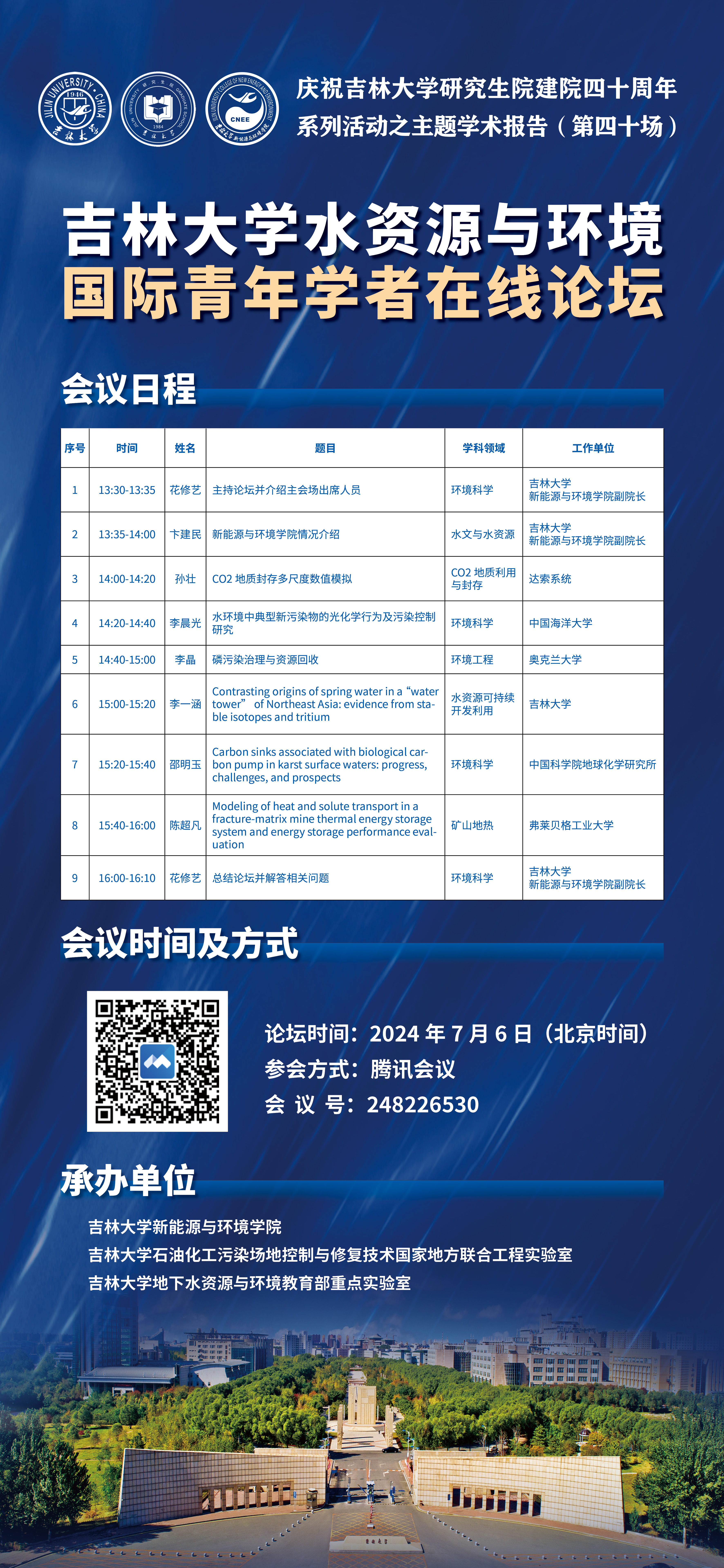 庆祝一色 研究生院建院四十周年系列活动之主题学术报告(第四十场)2024年一色 水资源与环境国际青年学者在线论坛