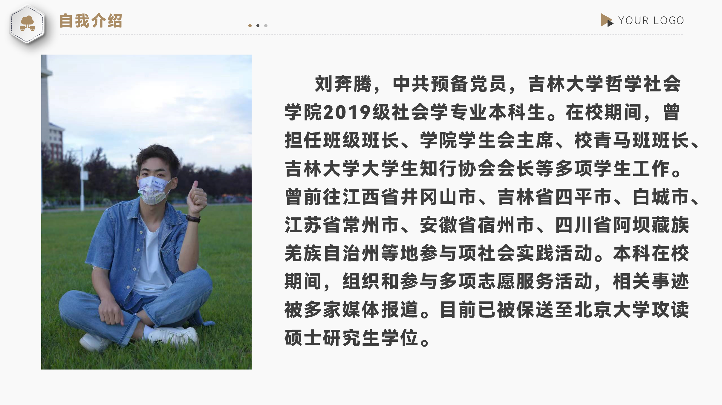 学生会主席团成员、2019级哲学社会学院社会学专业刘奔腾同学担任主讲人,结合本科期间担任团学工作的心得、成长、工作方法和综合发展进行分享。会议由学院团委社团部志愿者刘璐担任主持人,一色