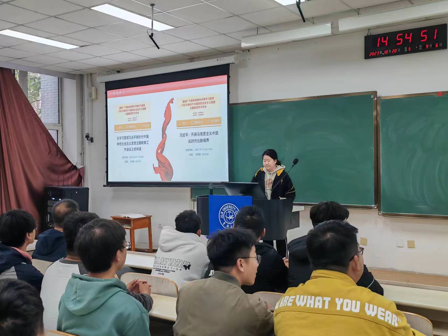 新能环与环境学院252122班团支部在团支书张雨蓉的带领下召开学习贯彻习近平新时代中国特色社会主义思想主题教育暨10月团日活动。班主任张利文老师参加本次团日活动。