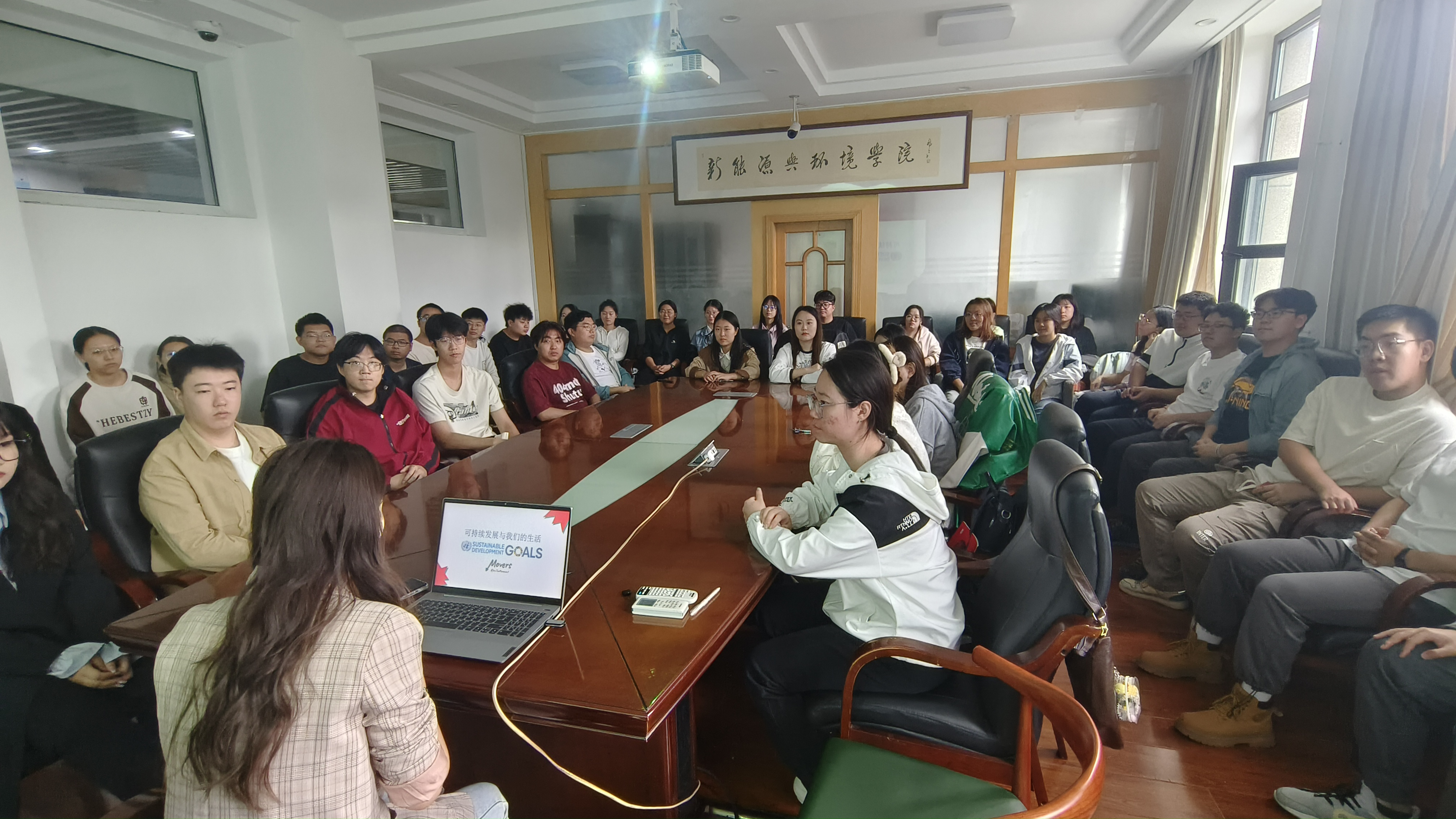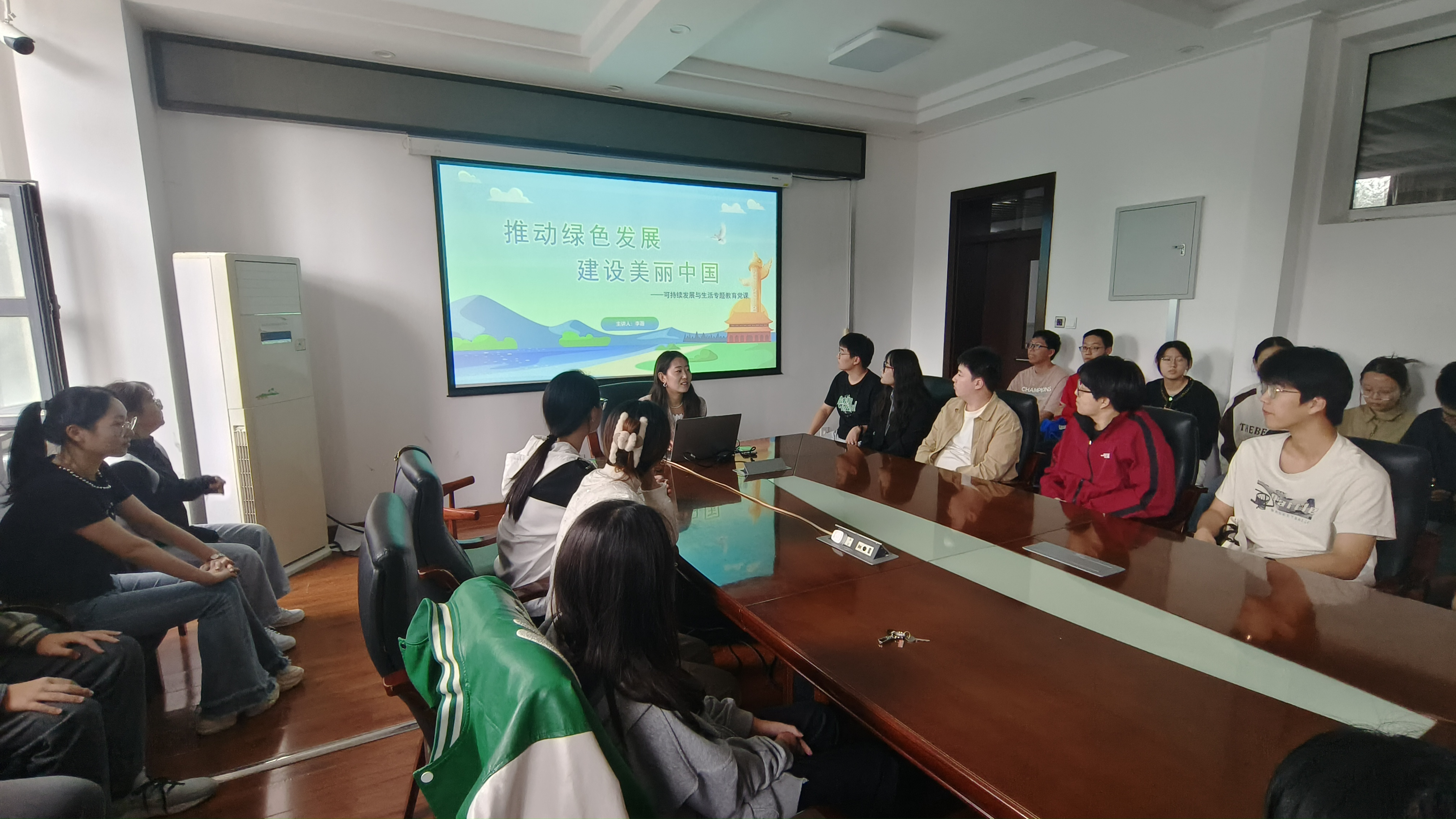 本科学生第一党支部召开“推动绿色发展,建设美丽中国”专题党日活动,党支部书记李薇通过工作坊的方式带领全体党员探讨“可持续发展与我们的生活”。