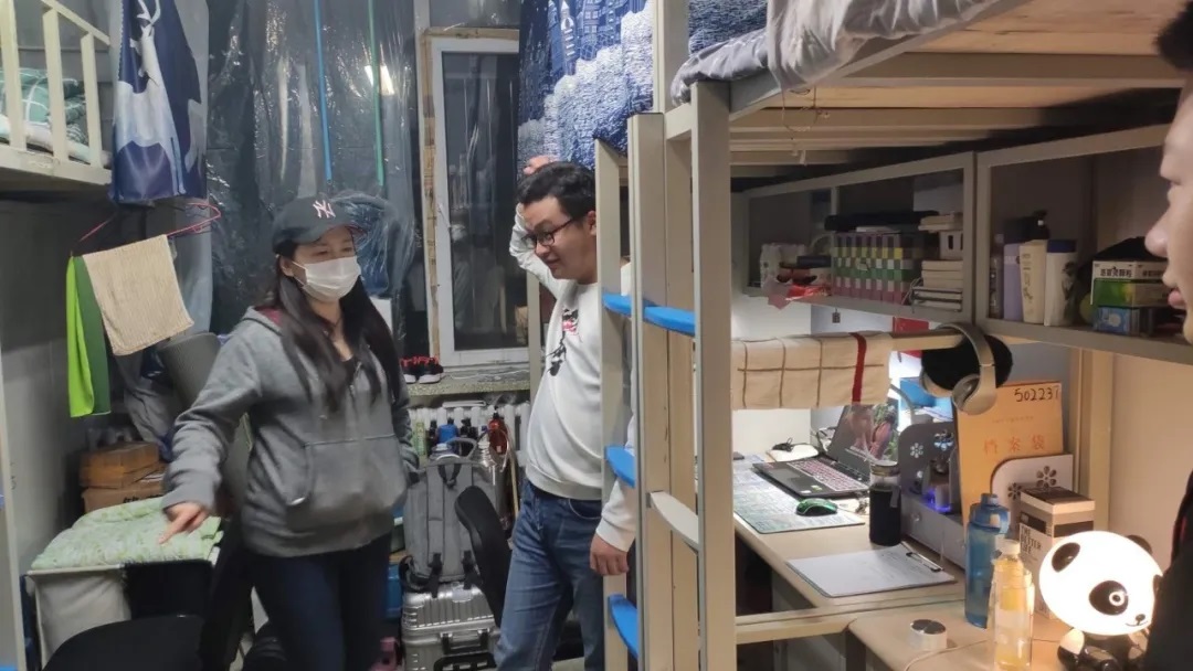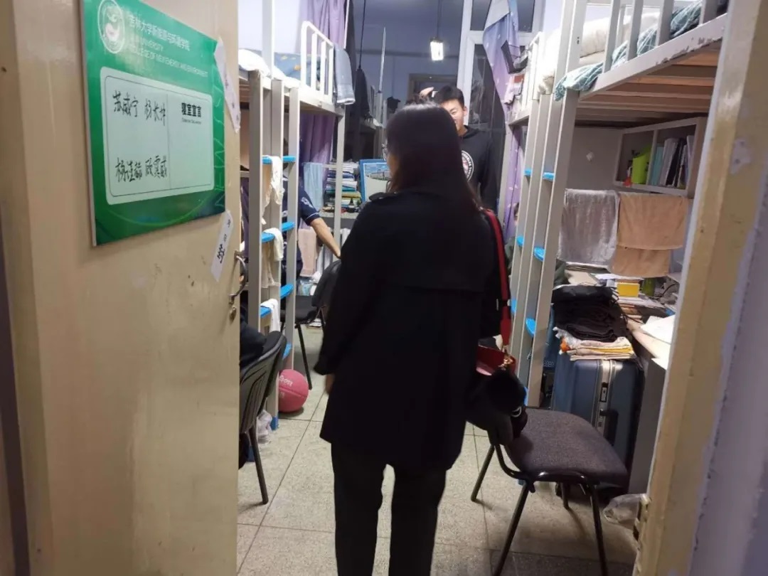 第三个重点是对同学们近期的学习与思想情况进行了深入了解。辅导员老师重点关怀20级新生是否能够适应军训生活,同时与其他年级部分同学在宿舍进行简单的谈心,了解最近学习和生活的近况,及时掌握同学们的思想动态。