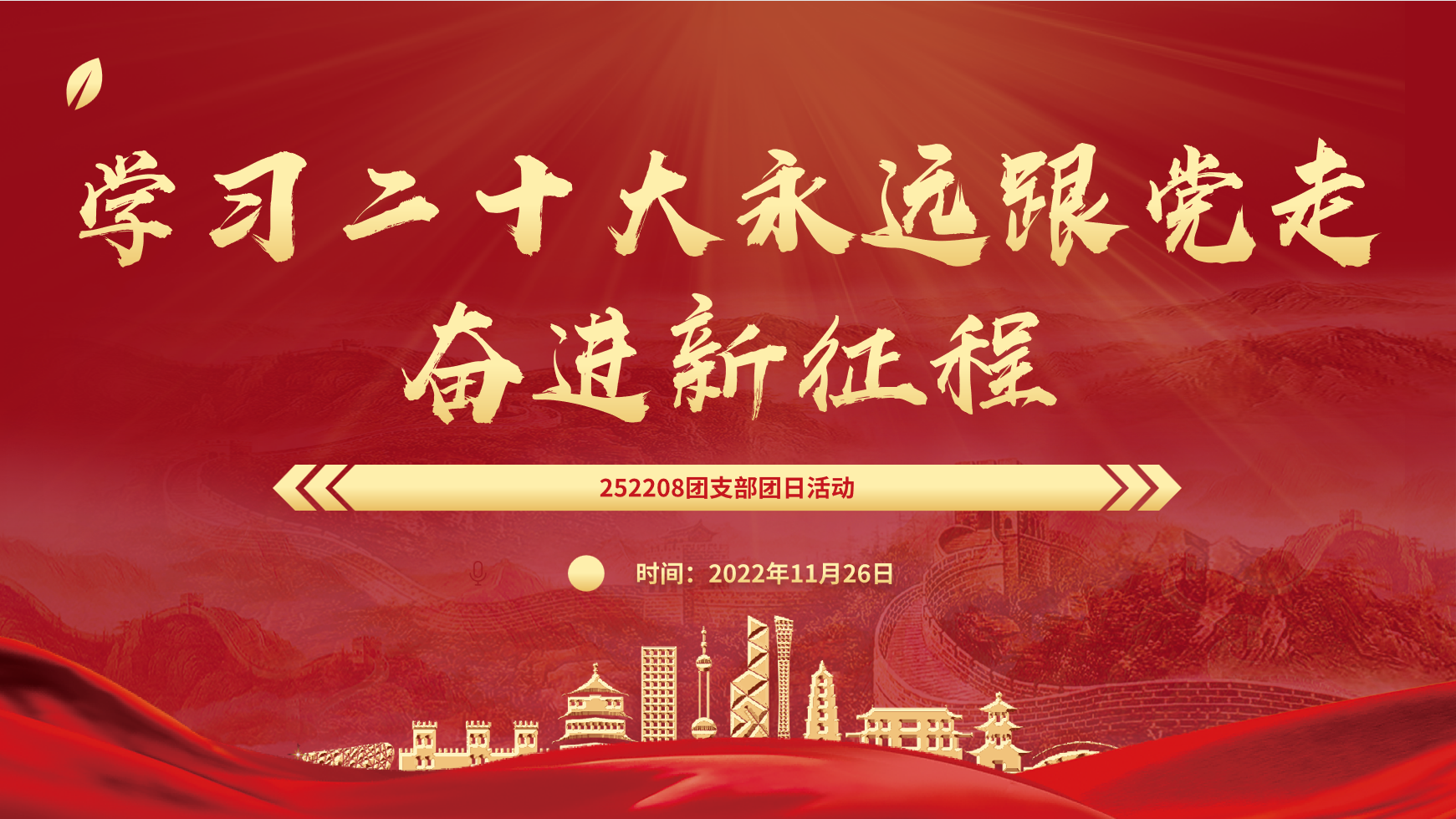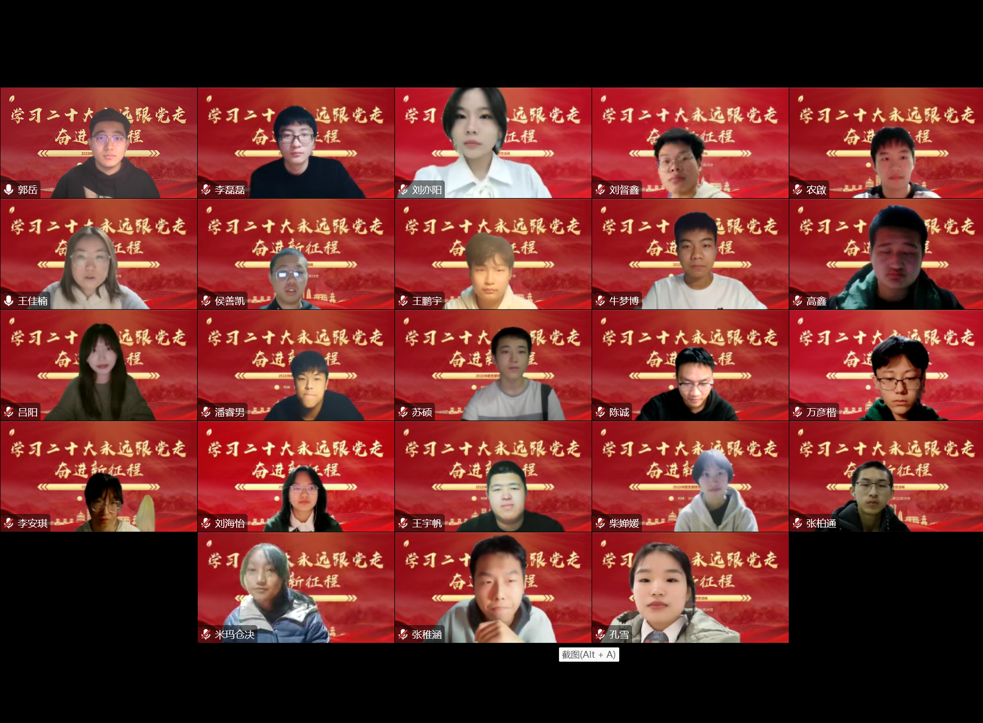 首先,大家进行了云团课的观看,团课讲述了党的二十大精神的重要意义和丰富内涵,聚焦“五个牢牢把握”的重要要求,要牢记习近平总书记的嘱托,以新时代好青年应有的姿态,奋进新征程,诠释新使命,创造新业绩。非凡十年谱华章,思想之旗领航向,人间正道开新篇,初心砥砺天地间,团结奋斗正当时,盛会归来话少年。