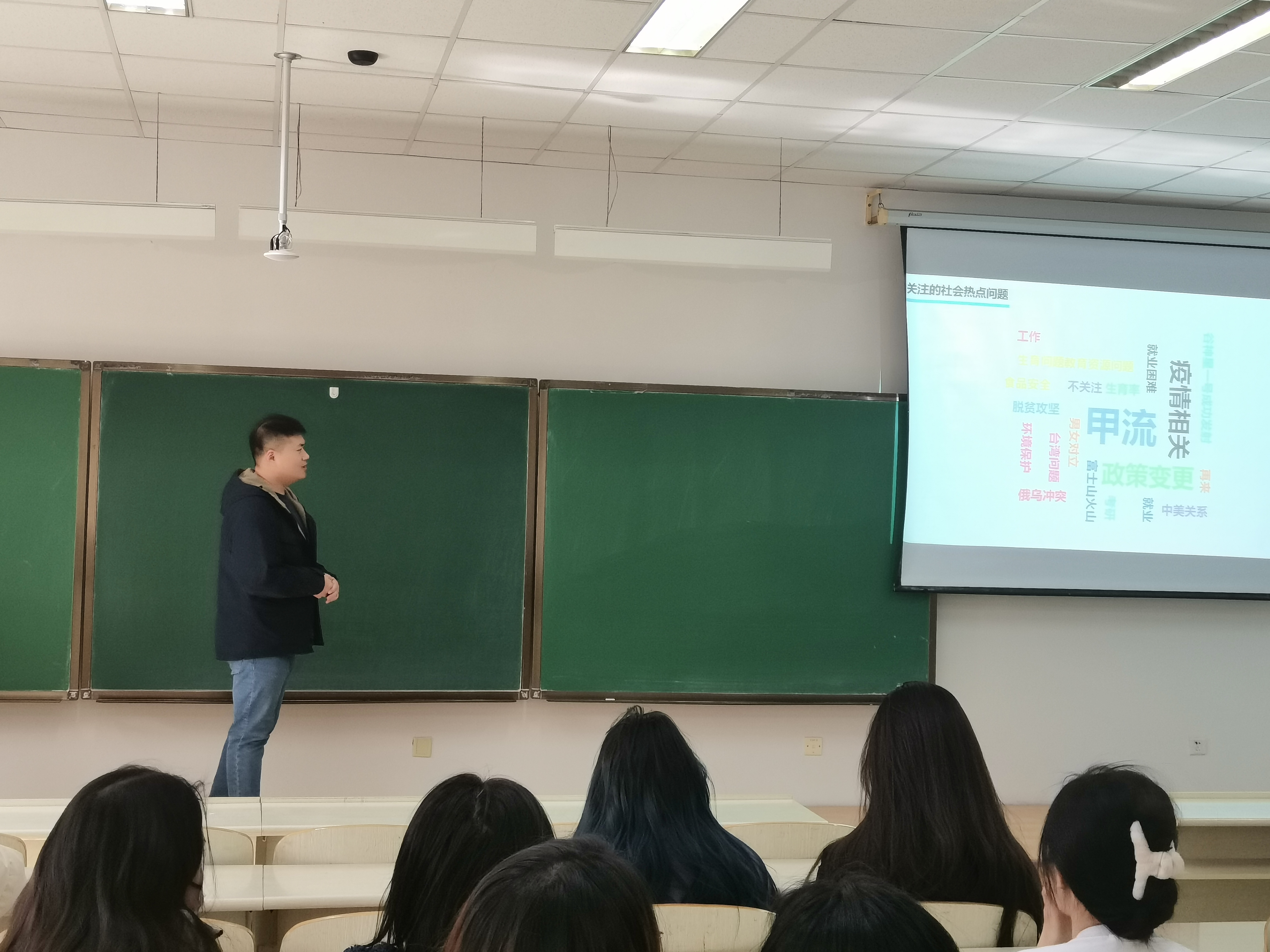 在召开之前,张老师已经在班级群内发布问卷,征集同学们感兴趣的话题。问卷征集显示,同学们对甲流、保研考研、大创较为好奇。张老师制作了精良的PPT细心地为同学们答疑解惑。