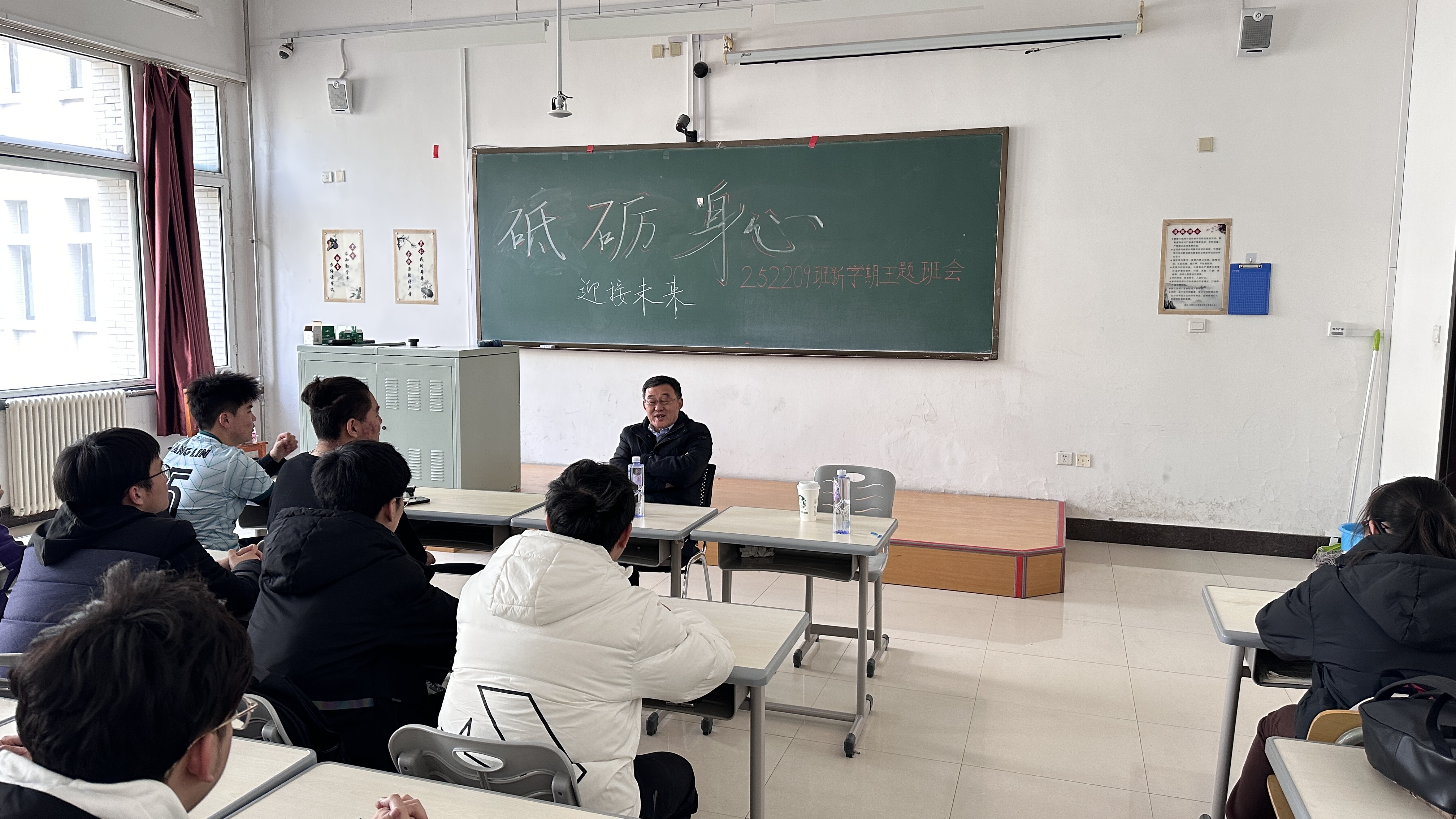 252209班全体学生在班主任许天福老师,冯波老师的带领下,在李四光楼307教室线下开展“砥砺身心,迎接未来”主题班会。