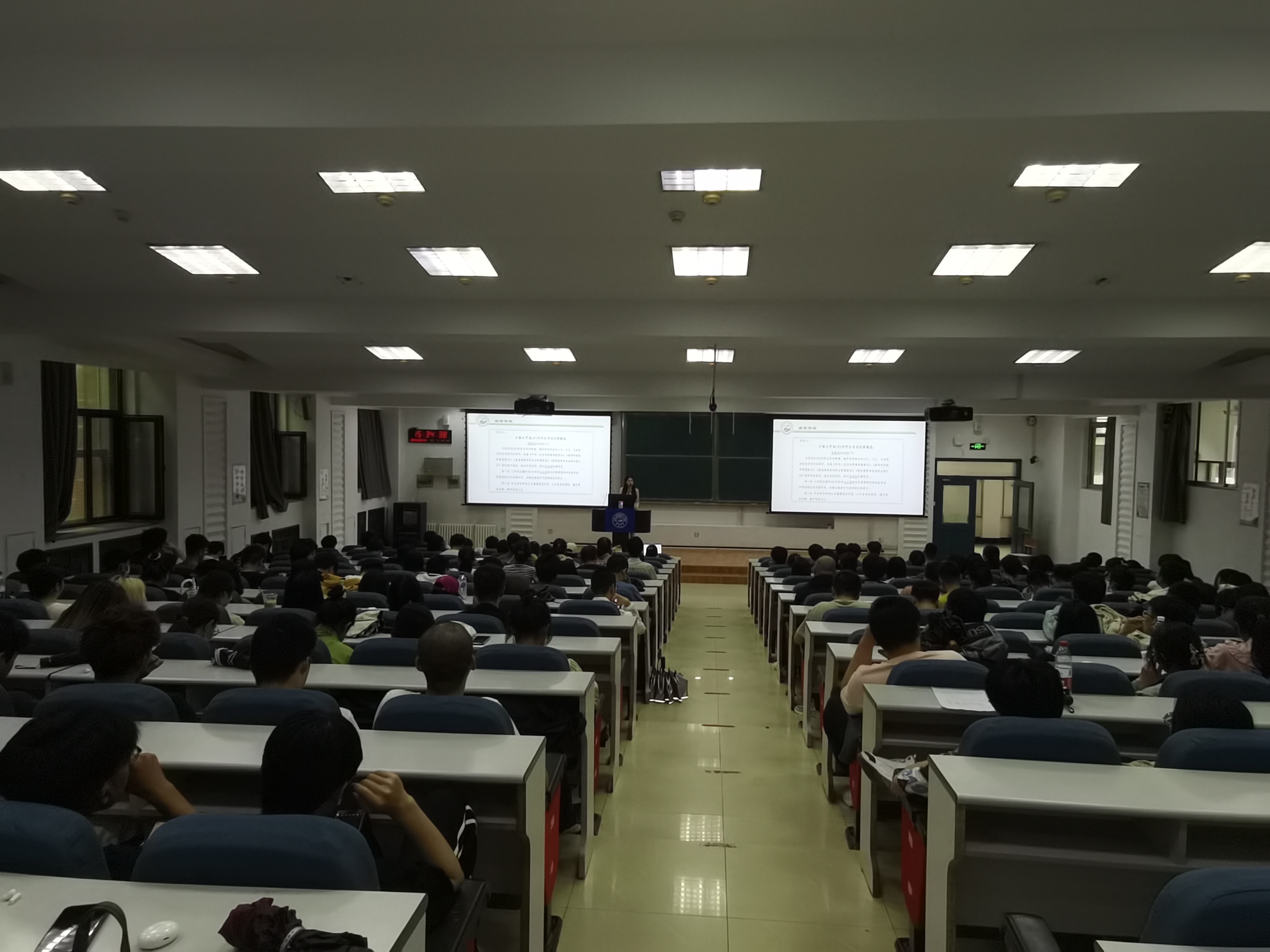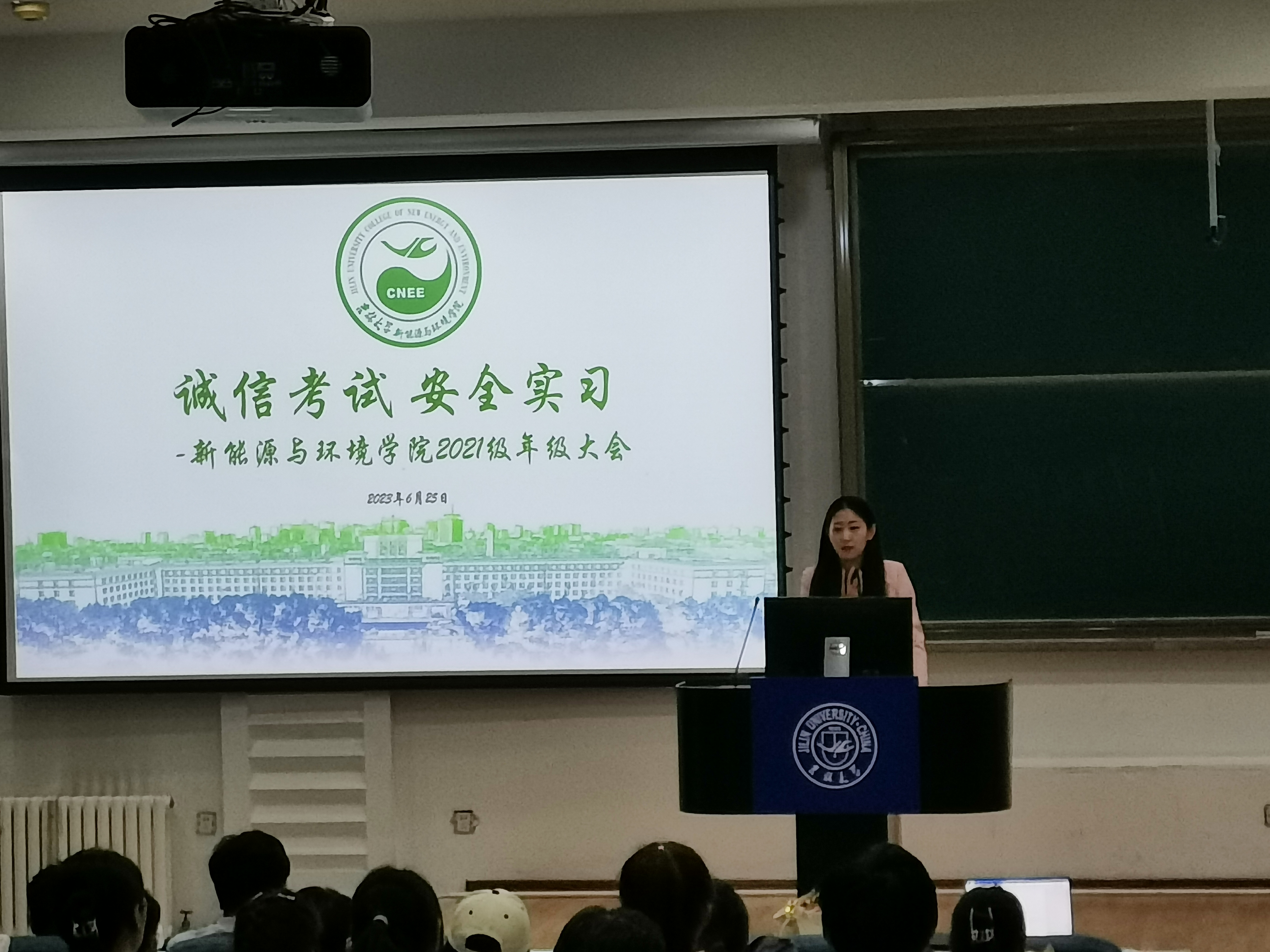 2021级同学举行年级大会,讲解有关诚信考试、教学实习、搬寝合寝及“端午”假期期间安全注意事项,辅导员李薇老师主持本次大会。
