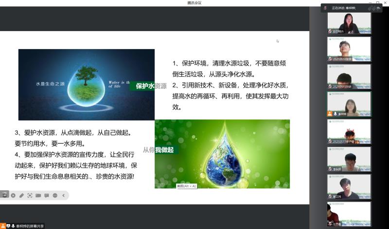 随后,秦梓烨同学结合专业知识,向同学们科普了有关保护水资源与防治地下水污染的措施,呼吁同学们在日常生活中节约用水、一水多用,不要随意倾倒生活垃圾,保护好与我们生命息息相关的、珍贵的水资源。