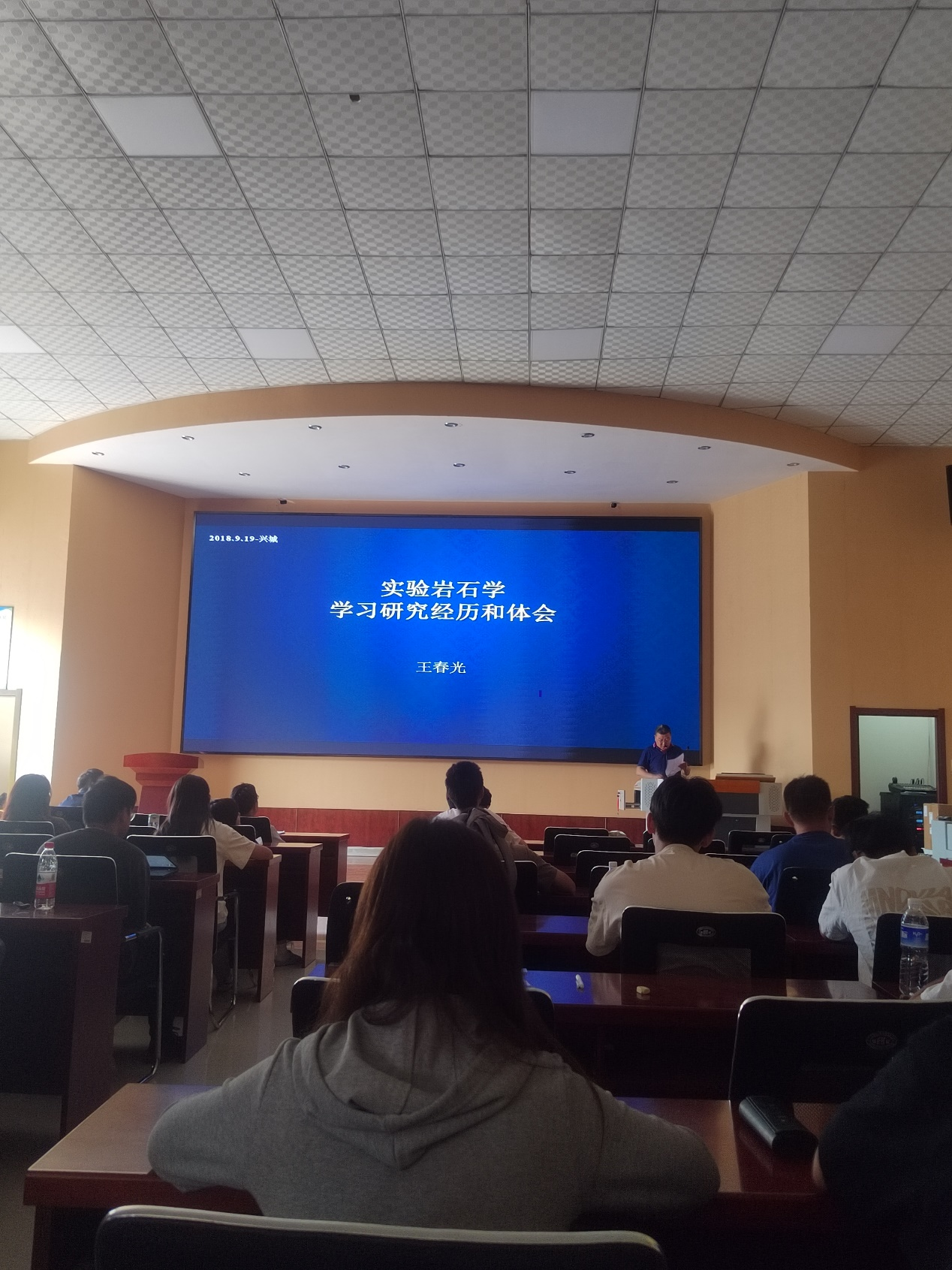 9月19日,经历了三天的野外地质填图之后迎来了休息日。今天大多数同学都开始撰写实习报告,也有部分同学在进行地质填图及剖面图绘制。晚上八班全体同学在兴城教学基地报告厅倾听了王春光教授分享的实验岩石学学习研究经历与体会,同学们也对岩石学有了更深的了解。