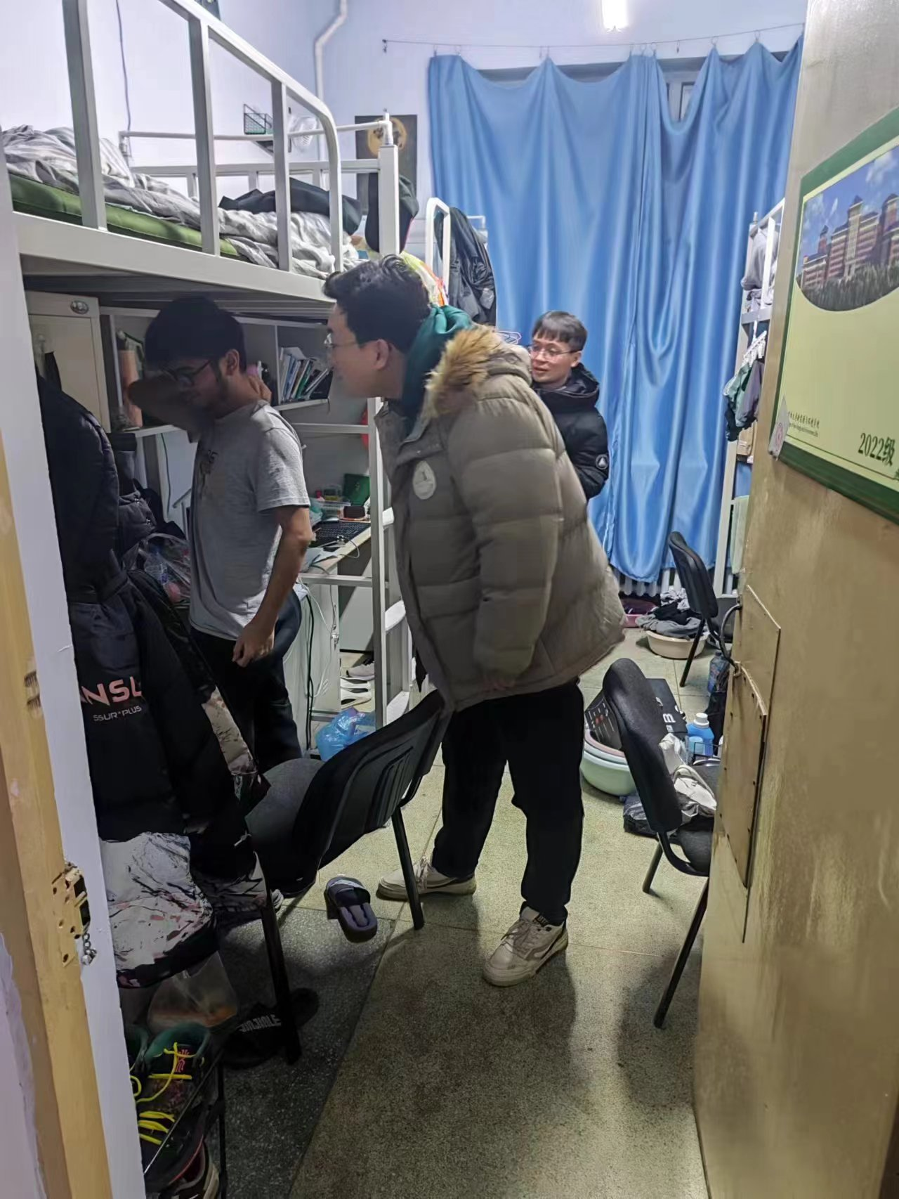共有学生公寓247间,其中南区南苑一公寓寝室106间,南苑二公寓寝室63间,朝阳校区七公寓52间,五公寓26间。在11月6日、10日、11日、14日、17日、22日、27日寝室走访过程中,老师督促同学们遵守公寓规定,不要使用违章电器,不要堆放杂物,不要私拉电线,不要存放易燃易爆物品等。本月公寓卫生安全检查过程中,大多数寝室卫生状况良好,寝室内整洁有序,发现2021级有两例违规电器使用情况,发现南苑二公寓一间寝室温度过低,已及时报修寝室窗户。