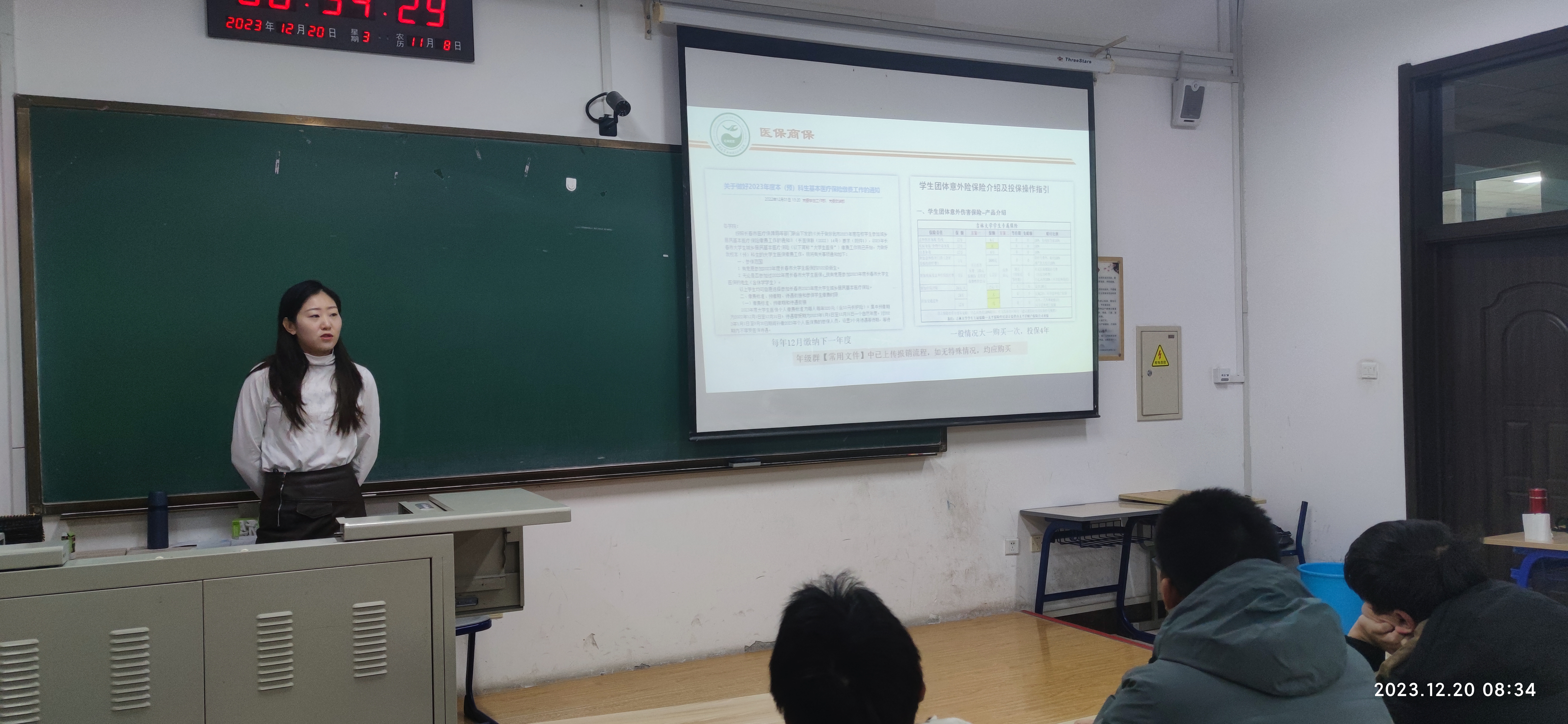 首先,老师在会上详细说明了医保、商保缴纳对学生及其家庭的重要性。缴纳保险不仅是防患于未然,为同学们生病就医节约开支提供了保障,同时也能用另一种方式宽慰远在家乡的亲人对同学们的安全健康的担忧。在学院老师和班级班委的督促下,年级同学商报参保率达到100%,力争做到人人有保障。
