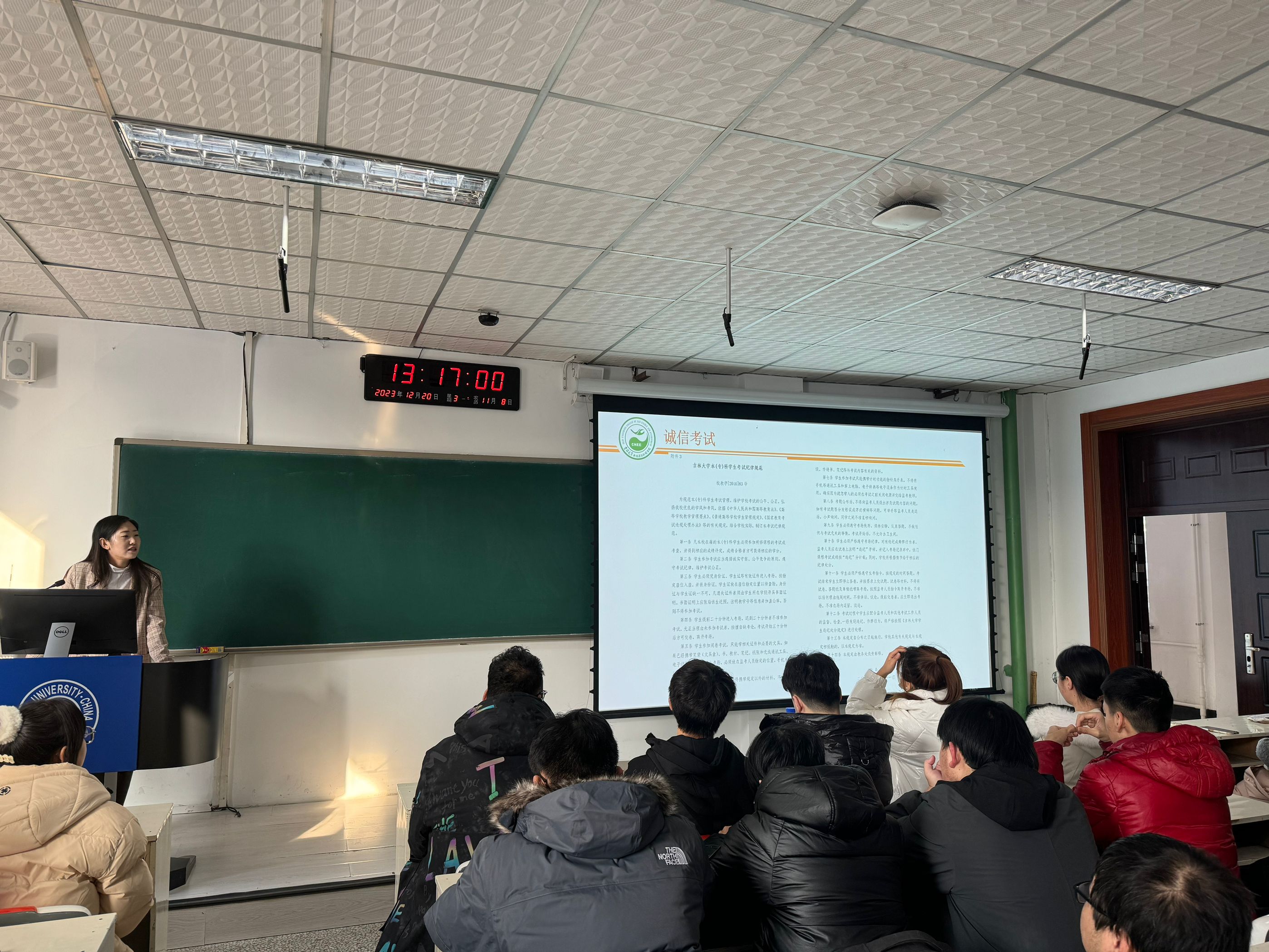岁月不居,时节如流,这个充实而忙碌的学期也将迎来尾声。在期末周即将来临之际,为了帮助同学们顺利通过期末周的考试,再次强调考试规范与考试纪律,助力同学们度过安全愉快的假期,2023年12月20日,在辅导员李薇老师的主持下,一色