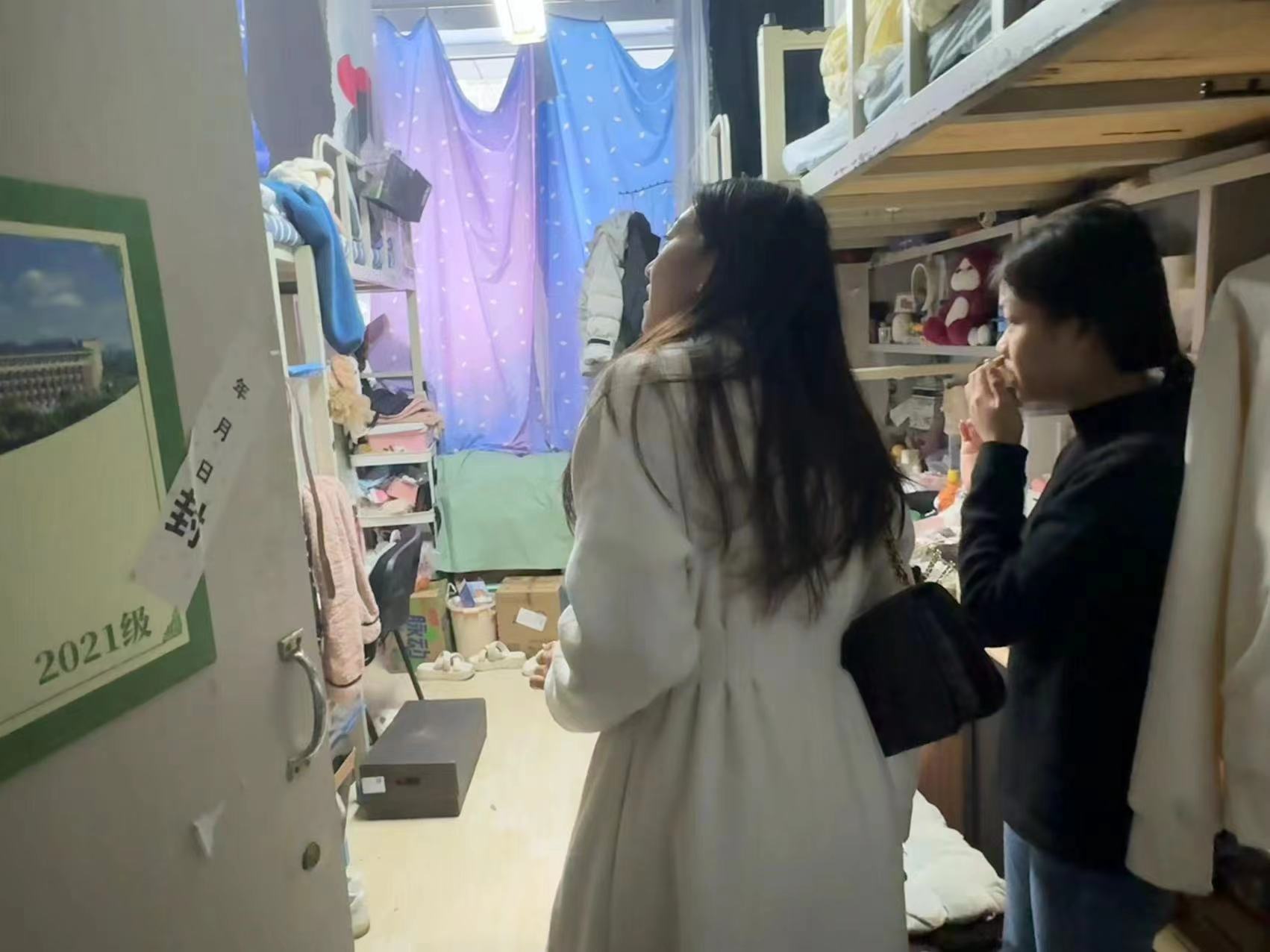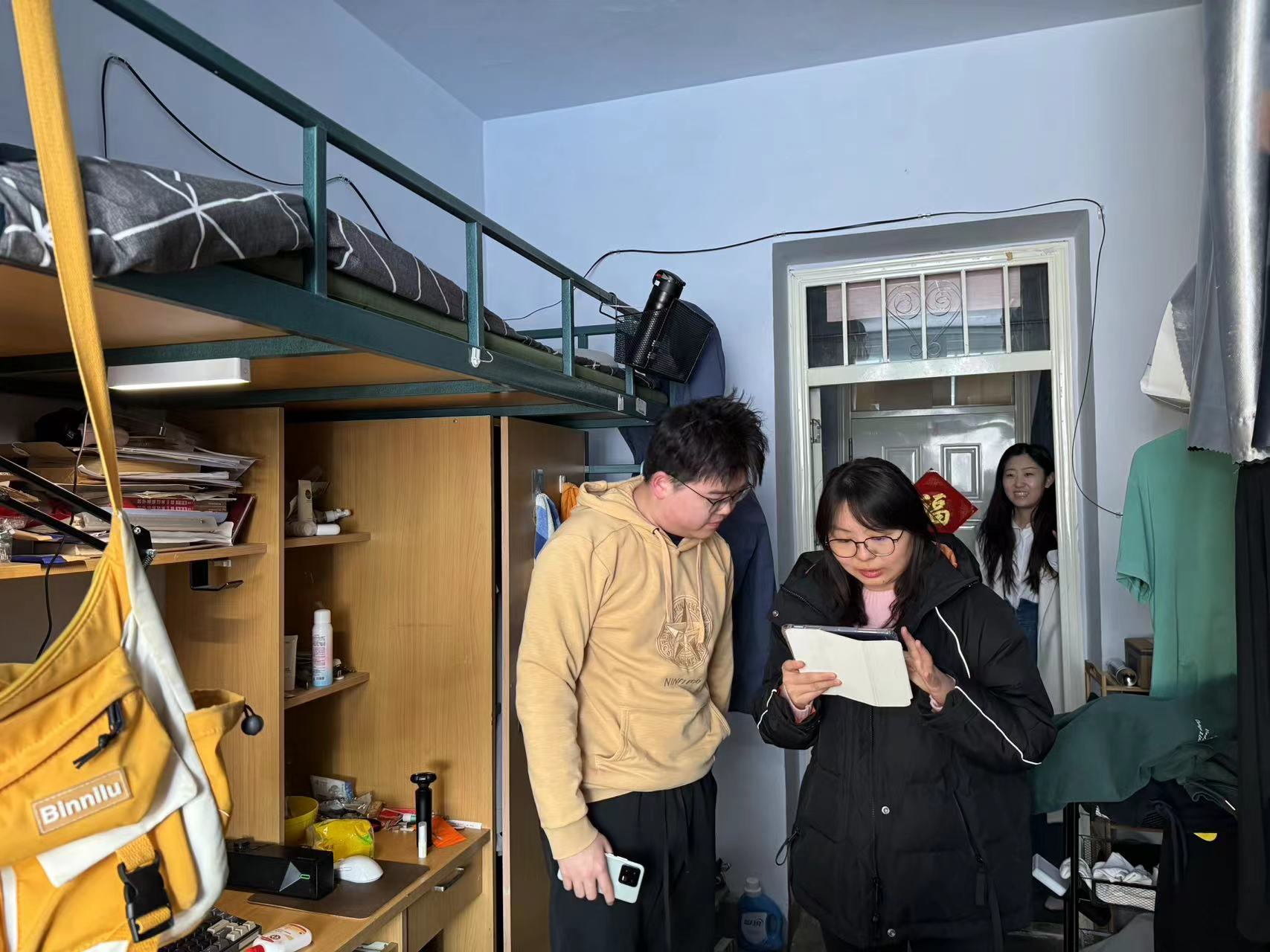 另外,近期全国各地火灾事故频发,寝室人员密集区域,是火灾发生的高危区域,为深刻汲取事故教训,加强学生公寓消防安全管理,本次寝室走访的重点任务是对学生寝室可能存在的各类火灾隐患开展全面排查整改。走访过程中辅导员老师们反复提醒学生不要使用违章电器、劣质电器;及时整理行李避免造成易燃物品堆积;离寝注意关窗关电。
