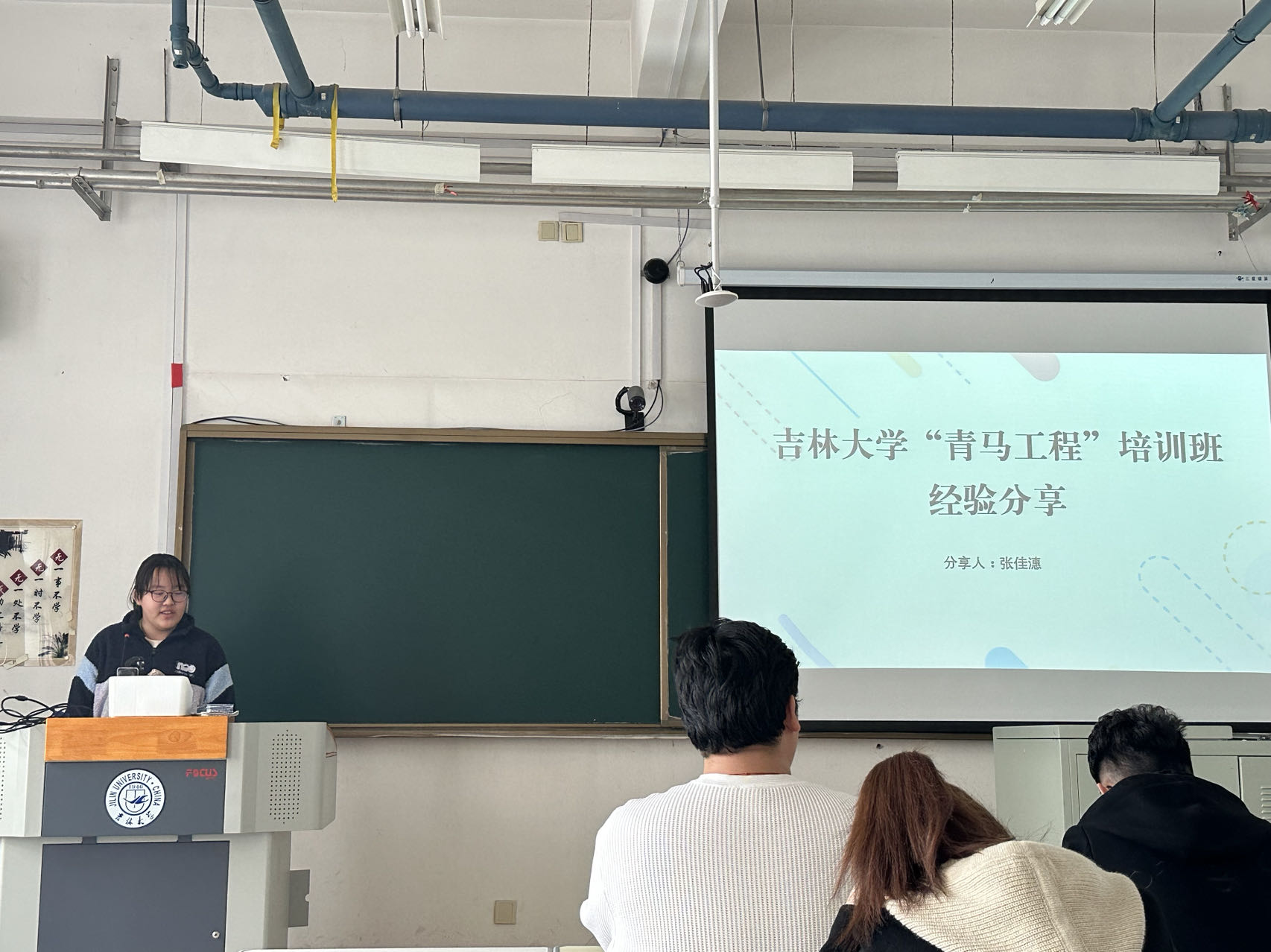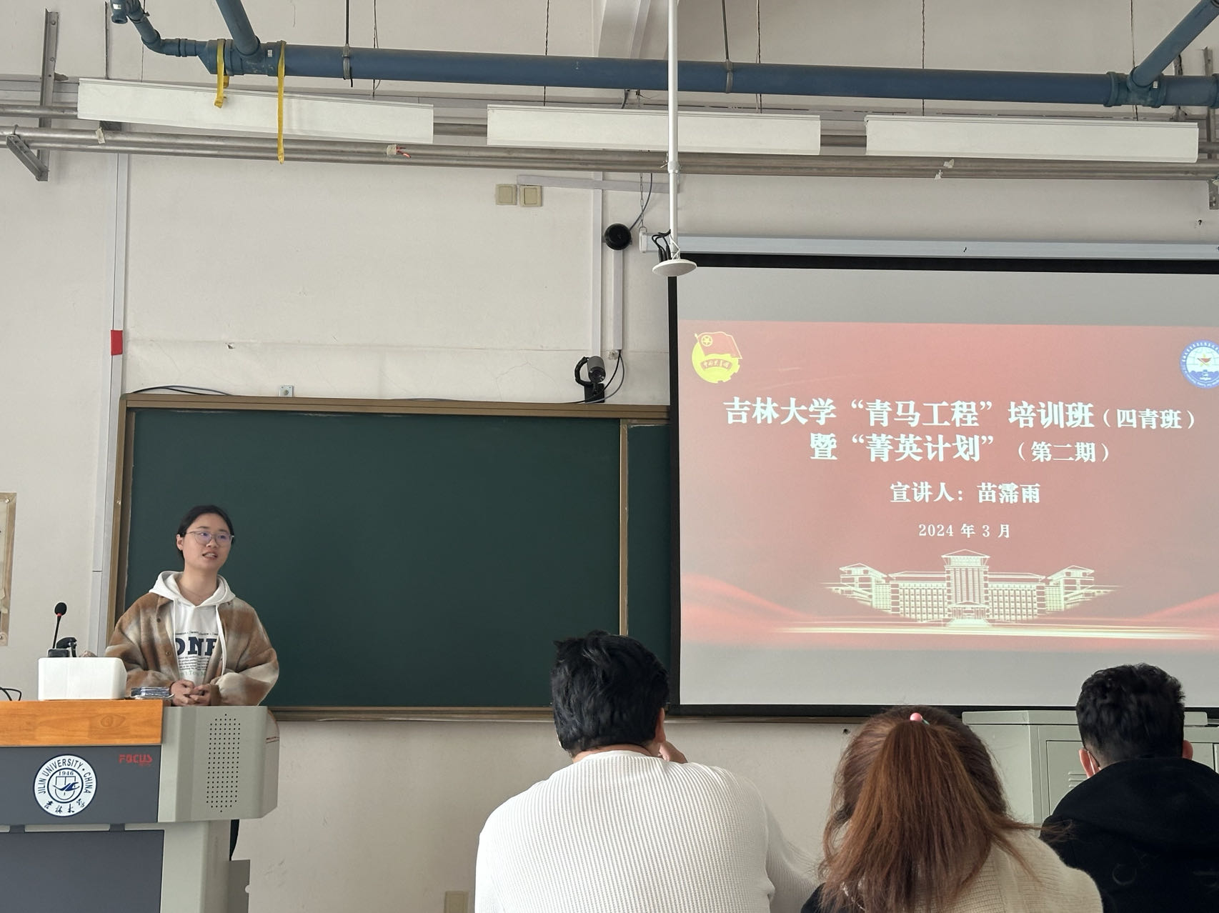 于3月17日举办了“青马工程”宣讲会暨往届学员经验分享会,由“青马工程”二青班成员苗霈雨、“青马工程”三青班成员张佳潓为同学们从组织介绍、遴选流程、笔面试注意事项等方面进行宣讲分享。