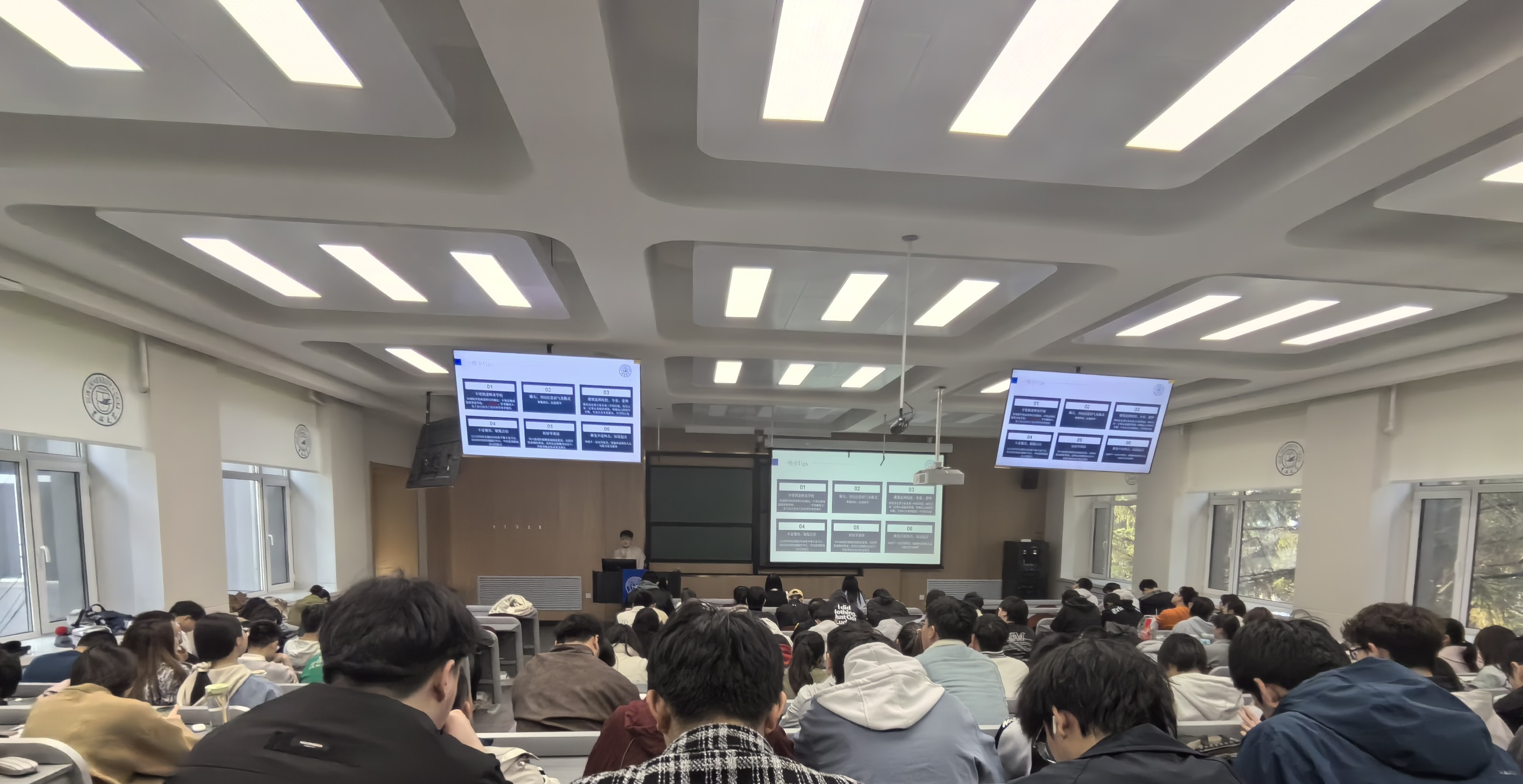 在朝阳校区实验楼200教室举办了“同新协力 学长护航”大学生职业发展与就业创业指导专题讲座,朝阳校区2021级全体本科生参与本次活动,辅导员李薇老师担任主持人.