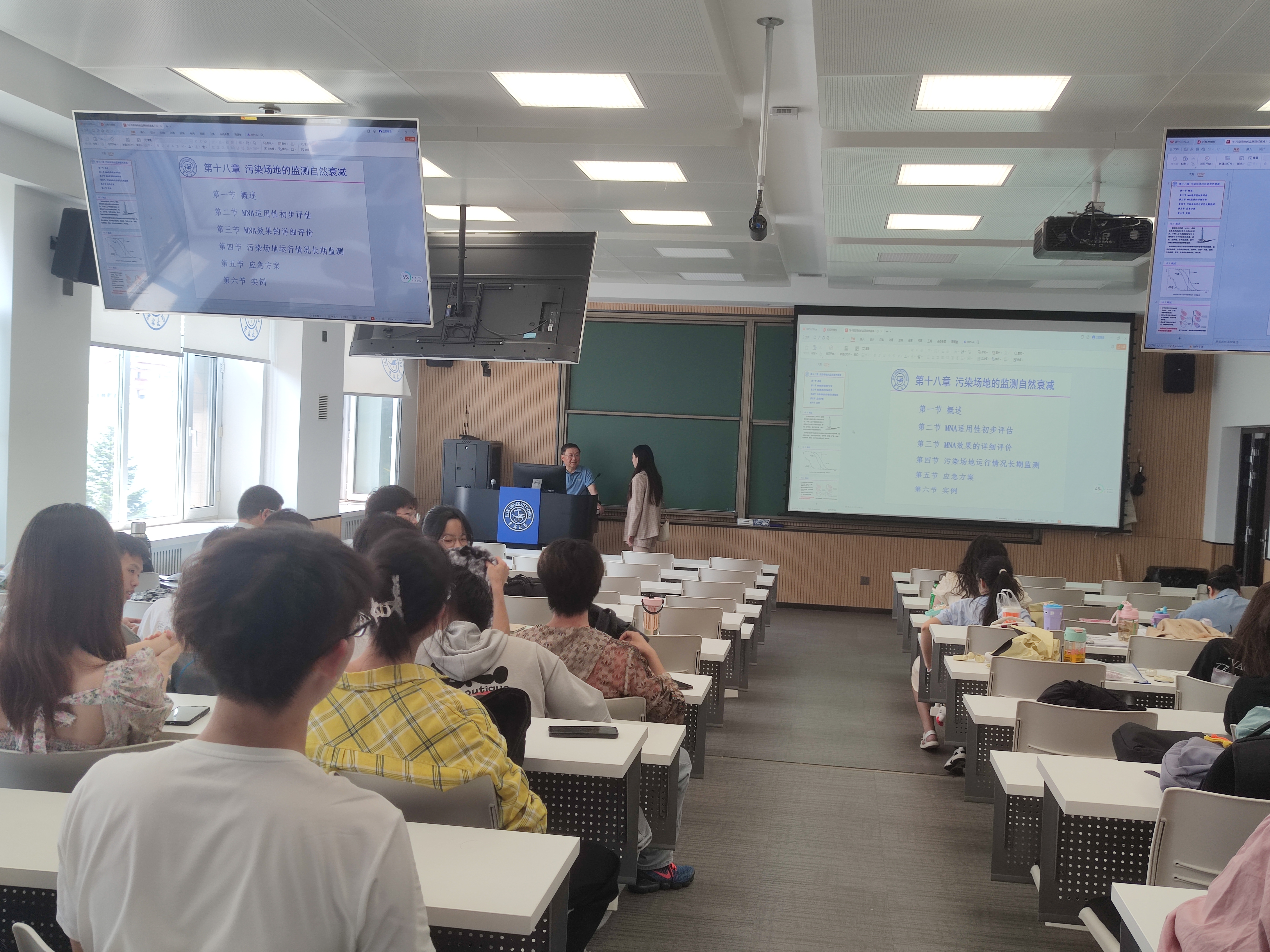 本周2021级和2023级辅导员对《污染场地控制与修复》和《工程制图》两门课程进行检查,临近端午假期,两位老师着重检查了节前出勤情况和课堂秩序。除《工程制图》有两名同学因病请假以外,两次课程的同学皆按时出勤。课堂纪律良好,尤其是《污染场地控制与修复》,任课教师反映该课程同学出勤和课堂表现一向非常优秀。