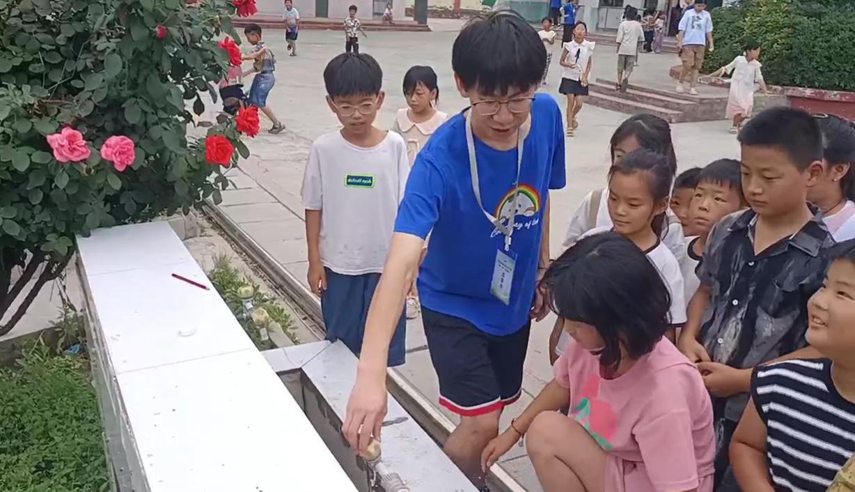 在支教过程中,团队成员们不仅承担着知识传递的使命,更肩负生态文明建设的参与者和传播者。生态文明课上,老师们带领同学们走出教室,投入大自然的怀抱,体会每一片树叶、每一滴水的存在价值,通过实际操作让同学们了解垃圾分类、水资源保护等环保知识,并引导他们将这些知识运用到日常生活中,倡导大家从小事做起,减少使用一次性塑料制品、节约用水、积极参与校园绿化等,让生态保护成为日常生活的一部分。“绿水青山就是金山银山”,山川的壮丽、河流的细腻、花鸟的灵动无不让人心旷神怡,将生态文明的理念植入学生心中,这不仅增强了他们的环保意识,也让他们学会如何欣赏和珍惜身边的自然环境,体会和保护自然之美。