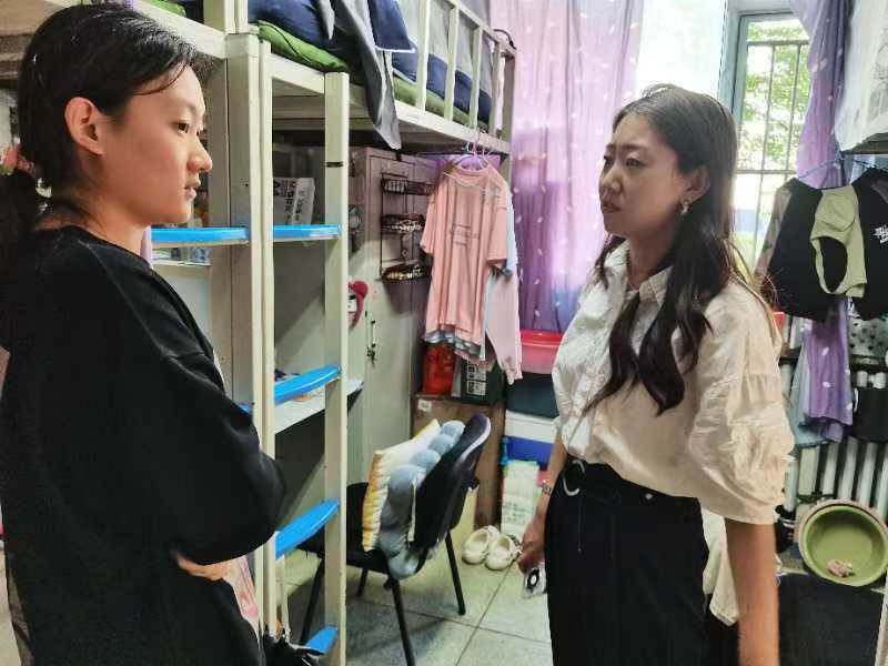 9月5日,2021级辅导员李薇老师对南苑一公寓、南苑二公寓进行消防安全与卫生清洁检查。查寝过程中对毕业生就业意向进行了解,提醒新生军训时期错峰出行注意交通安全。