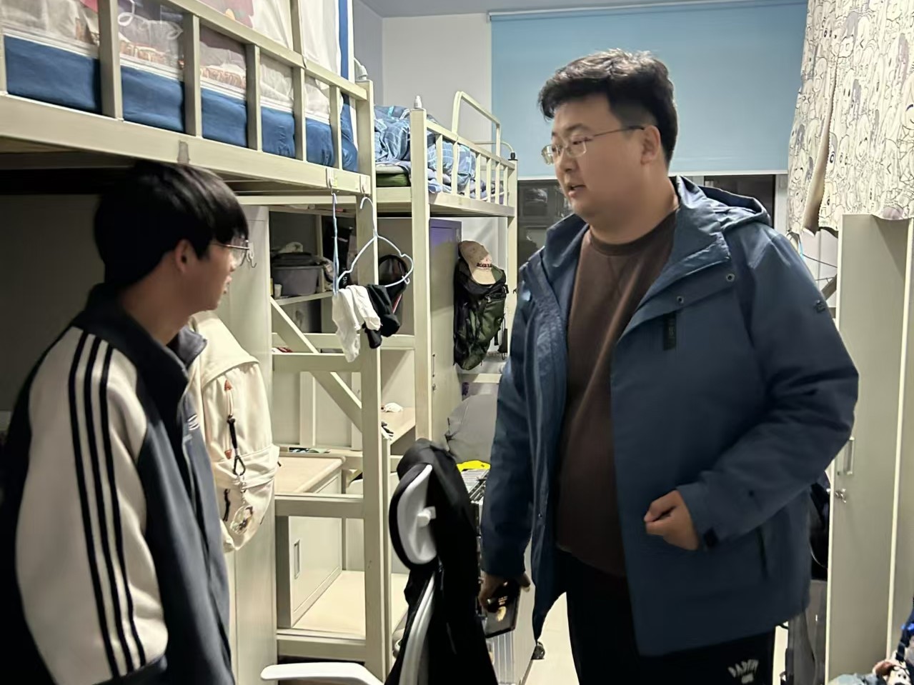 10月31日,2024级新生辅导员助理姜兆轩进入南苑一公寓检查寝室卫生情况和寝室供暖情况,并提醒同学们认真复习,迎接即将到来的期中考试。