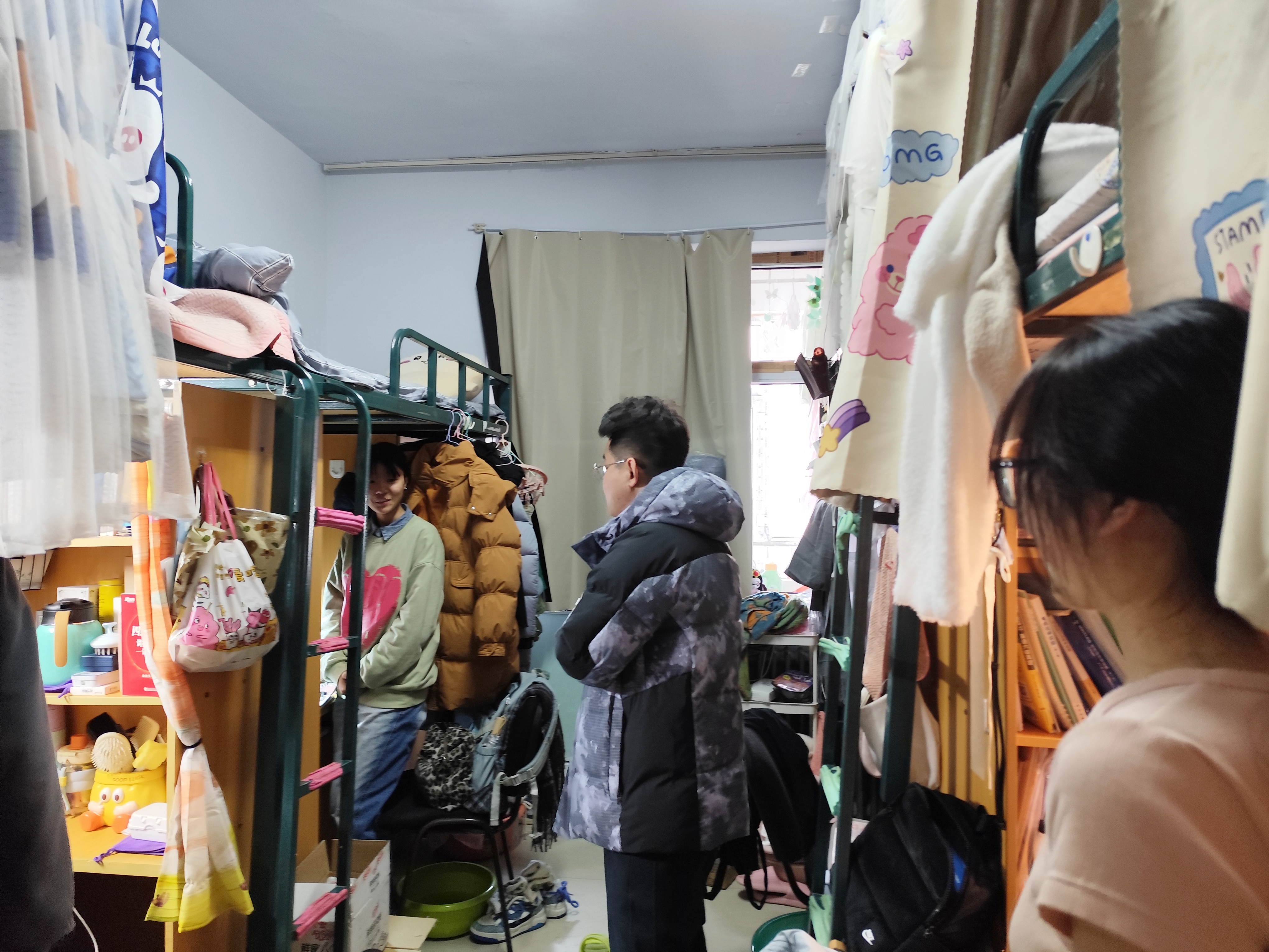 12月20日,2023级辅导员姜岳彤老师进入南苑二公寓寝室,提醒学生注意寝室卫生,及时进行期末复习,同时将个别寝室床铺损坏的情况进行报修。