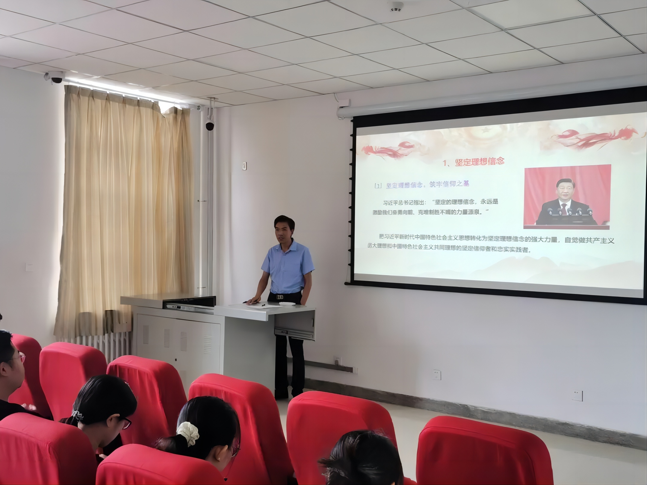 董军教授在讲授中指出,要深刻领悟习近平新时代中国特色社会主义思想的科学体系和精髓要义,要把习近平新时代中国特色社会主义思想转化为坚定理想信念的强大力量,自觉做共产主义远大理想和中国特色社会主义共同理想的坚定信仰者和忠实实践者。