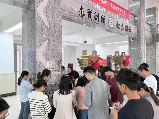 在布置现场时,路过的同学就询问我们活动开始的时间,想要参与进来。在活动开始后,许多同学来到大厅参与活动,还呼吁同学及同门一起参加,分享出属于自己的经验之谈。