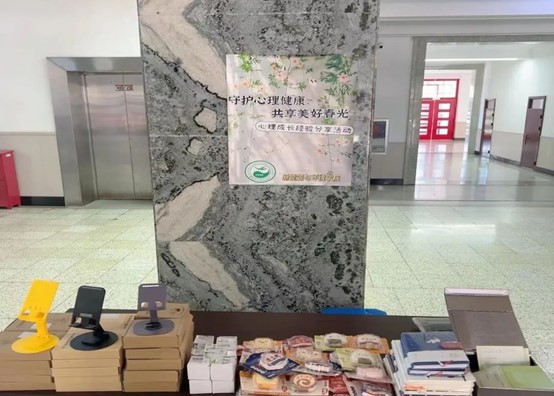 于2024年5月25日在理化楼2楼大厅成功开展“守护心理健康,共享美好春光”——心理成长经验分享活动。本次活动由沈天琪、谭晓玲同学主持,共发放答题卡片100张,回收答题卡片100张。