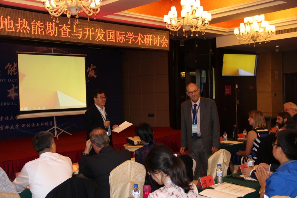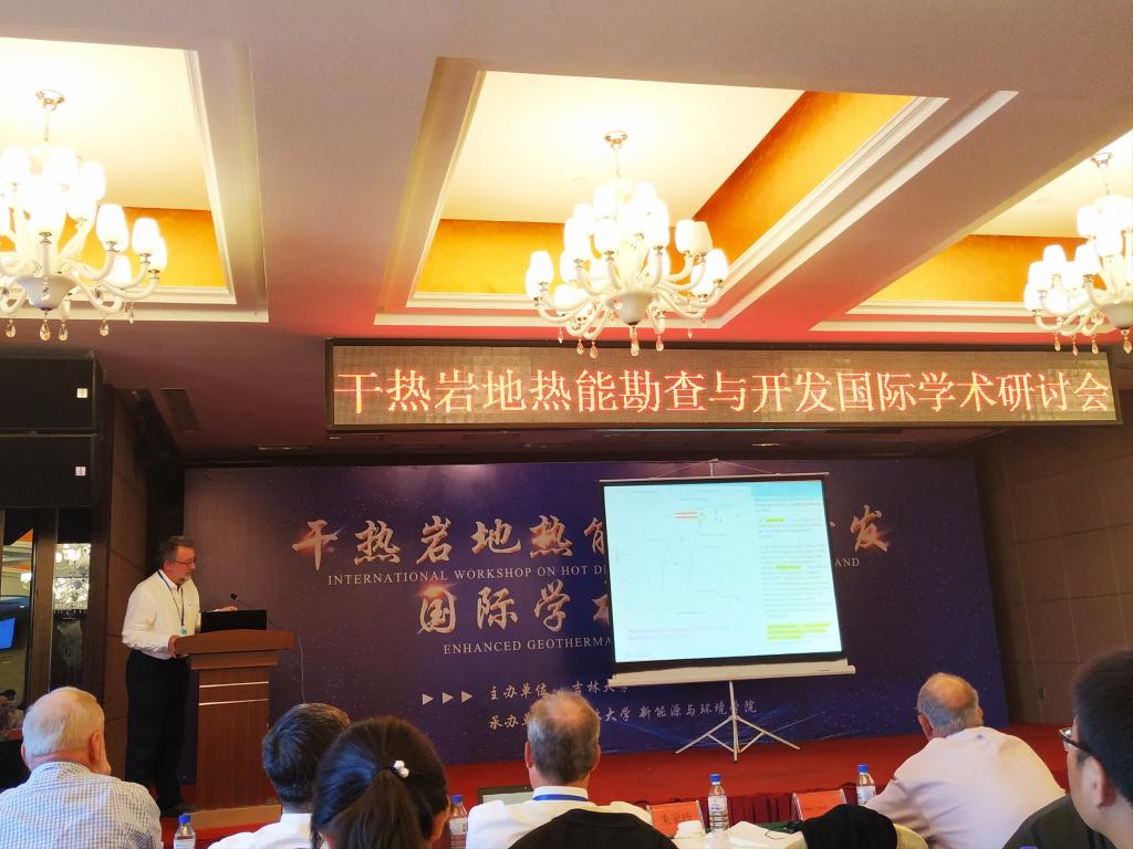 副校长孙友宏教授致开幕词。本次会议共设五个主题,涵盖国际典型EGS示范项目的案例研究与经验总结、干热岩成因机制与资源评价、干热岩资源勘查和EGS靶区选定、干热岩储层改造与能量获取工程、EGS开发相关的环境、经济、社会问题及政策措施等方面,共有11位国外专家、9名国内专家进行了主题报告。诺贝尔化学奖获得者哈特穆特•米歇尔也出席了本次会议。