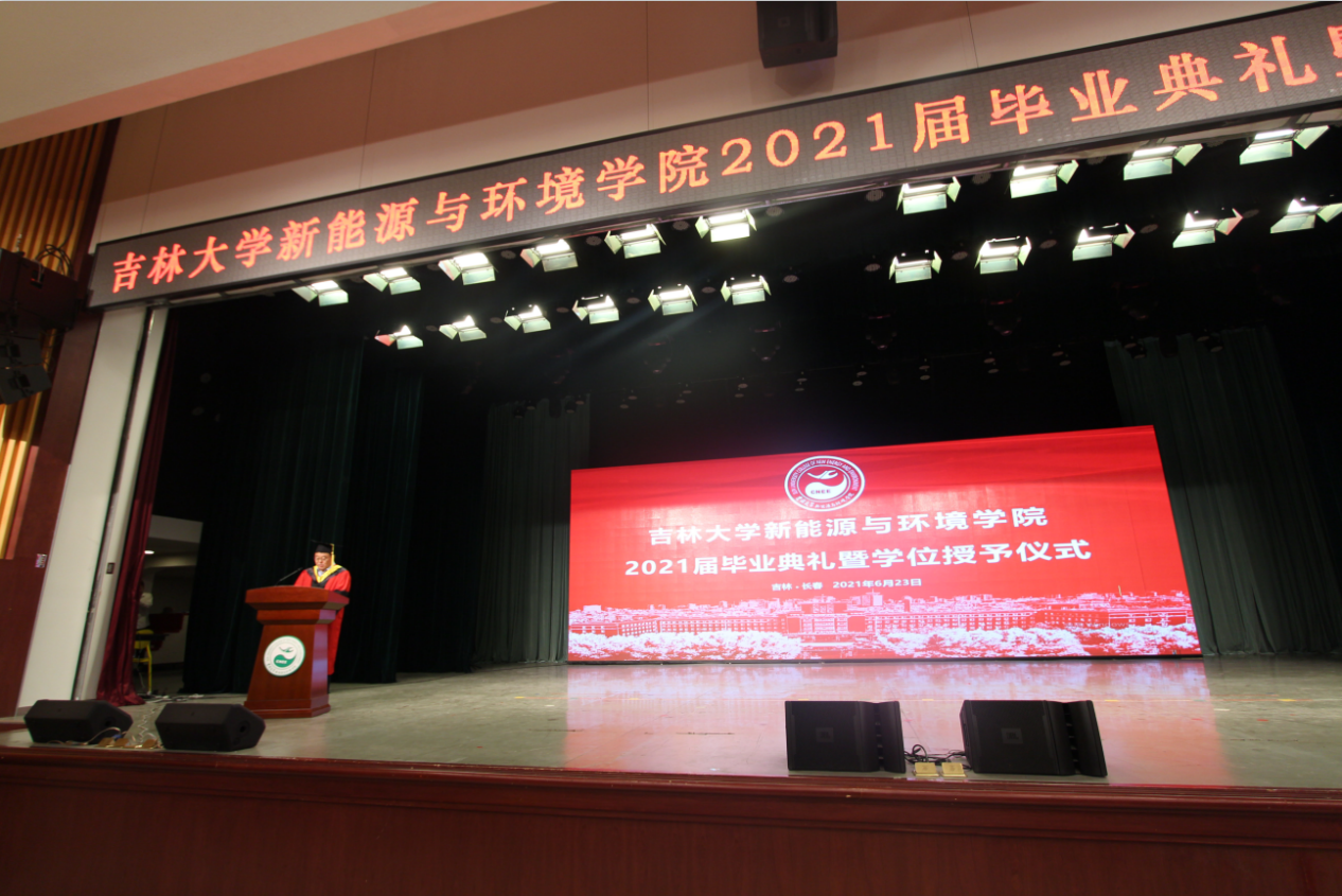 院长许天福、党委书记汪祥松,学术委员会主任赵勇胜,教学委员会主任董德明,副院长花修艺,副院长卞建民,副院长董军,副院长徐军,党委副书记兼副院长吴哲,党委副书记温卓,环境科学系主任王宪恩,地下水科学与工程系主任杜新强以及毕业班主任、教师代表与全体2021届毕业生共同见证这一神圣的时刻。典礼由学院党委副书记兼副院长吴哲主持。