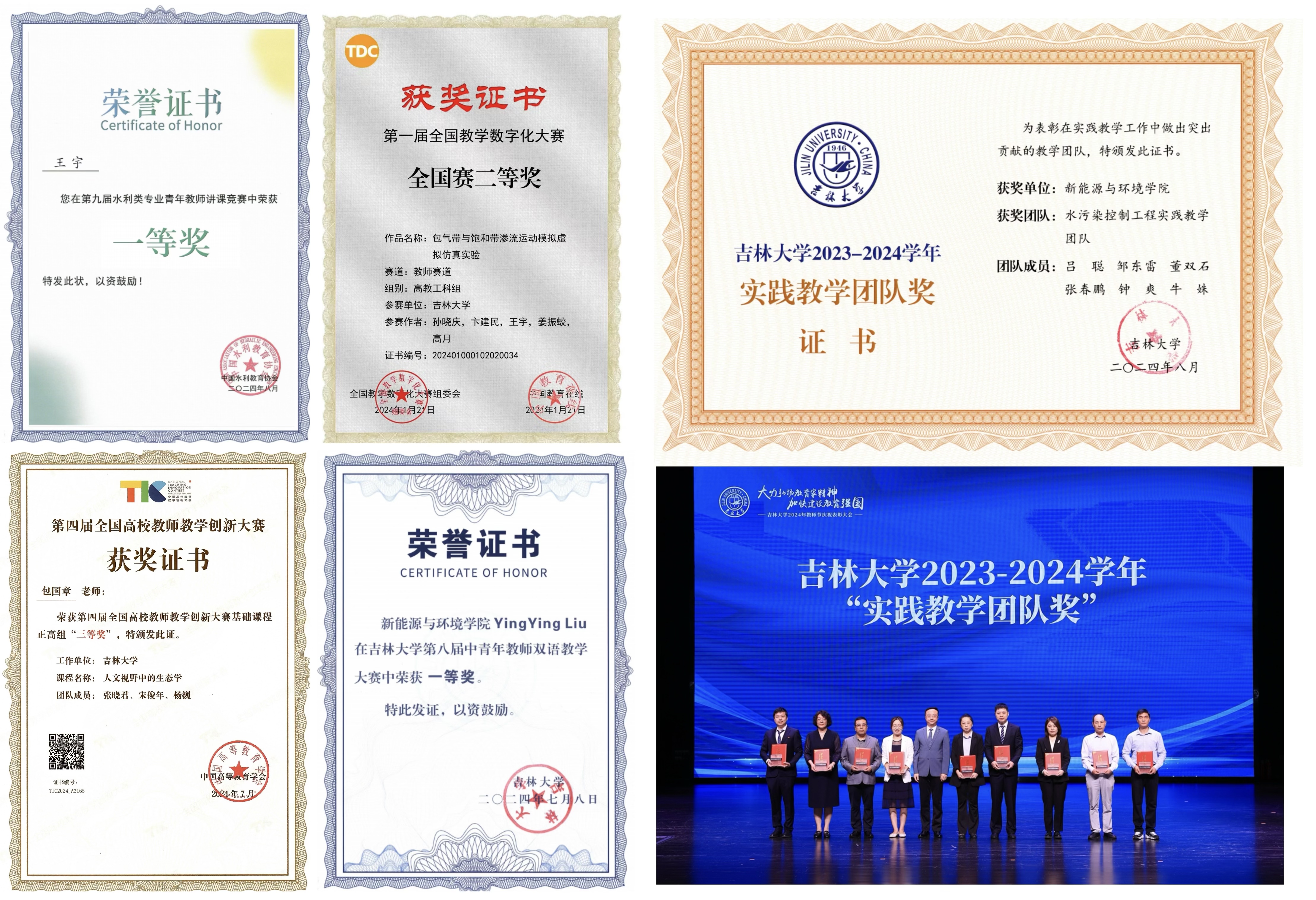 教师教学水平大赛一等奖1项等多项奖励;环境工程专业“水污染控制工程实践教学团队”获一色