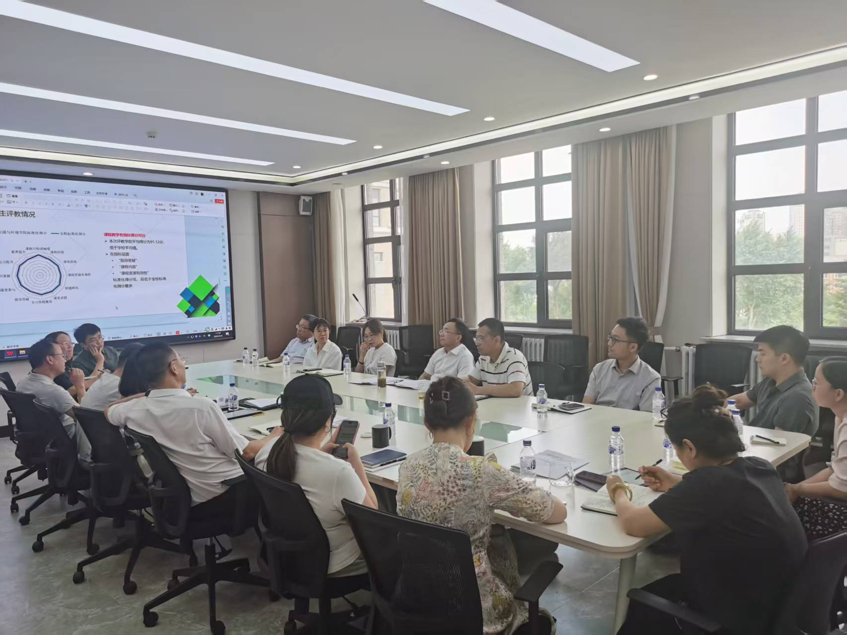 会上,分管本科教学的辛欣副院长进行了详细汇报。她首先介绍了学院教学工作的基本情况,全面梳理了当前教学运行的整体态势,让参会人员对学院教学工作的现状有了清晰的把握。随后,汇报了听课评课的总体情况,通过对听课过程中发现的各类问题进行归纳与分析,为后续教学改进提供了有力依据。还针对 AI 赋能课程建设情况进行了阐述,分享了学院在将人工智能技术融入课程教学方面所做的探索、取得的进展以及面临的挑战。