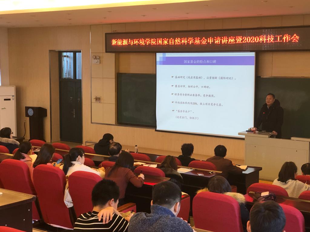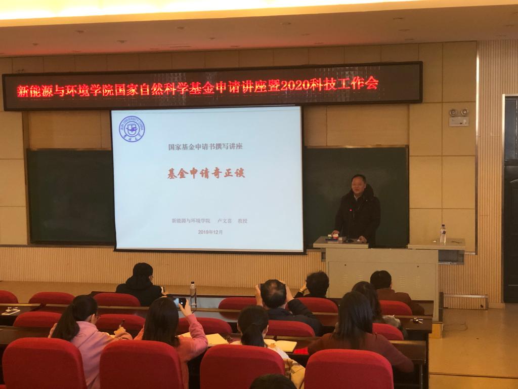 会上,卢文喜教授以《国家基金申请书撰写及讲座:基金申请奇正谈》为题,结合自己申报国家自然基金的成功经验,系统、详尽地介绍了近年来自己申报国家自然基金的心得体会。从宏观上为师生们阐述了如何申报国家自然基金、细节上如何写好申请书、申请技巧与注意事项等,让大家受益匪浅。随后,副院长董军教授对会上对学院2020年的科技工作进行了部署,最后,院长许天福教授对会议进行了简要的总结。许天福教授评价卢文喜教授的讲座实用且高效,并且鼓励一色 教师积极申报各类项目,在学院的科研工作中,取得更好的成果。