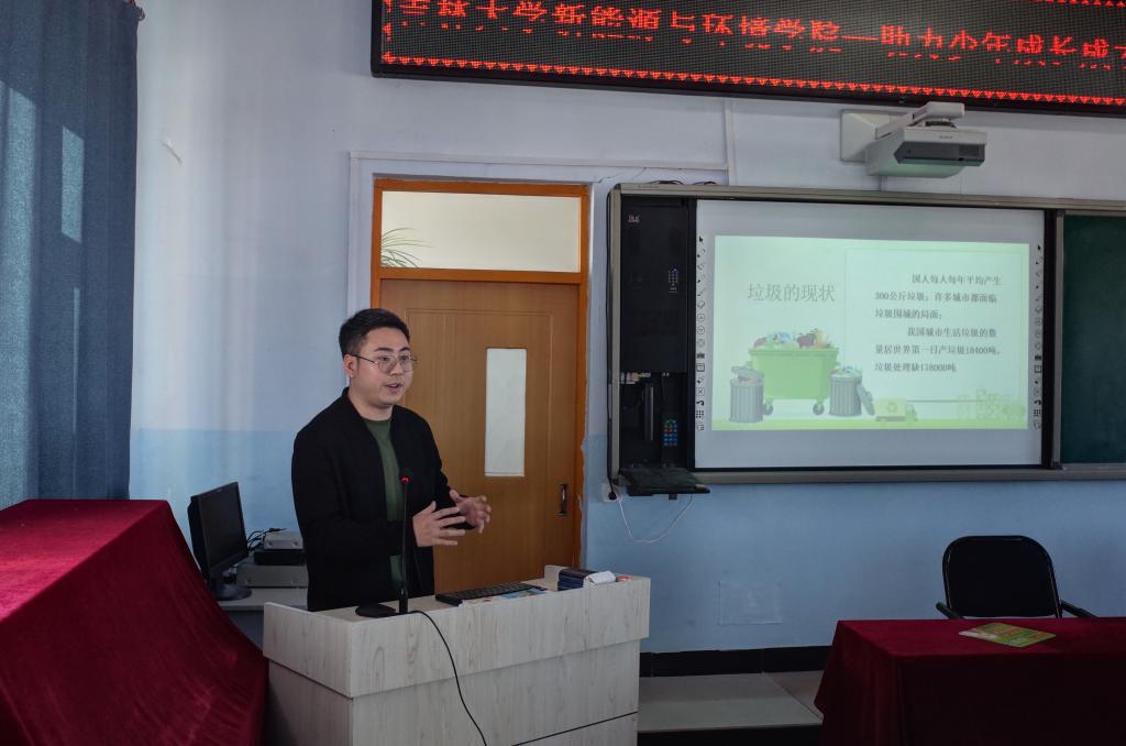 相关办学情况和此行目的。吴哲老师为孩子们做了以“树立远大理想、树立自信”为主题的讲座,引导他们树立理想,建立成长目标。钟宇博老师为孩子们做了关于垃圾分类和生态保护的实践分享,鼓励孩子带动家庭共同提升环保意识,争做环保小卫士。最后温卓老师和孟婧莹老师与现场学生互动,为同学们答疑解惑,鼓励学生树立自信实现愿景。
