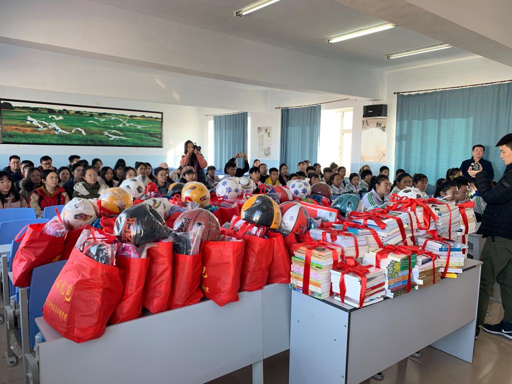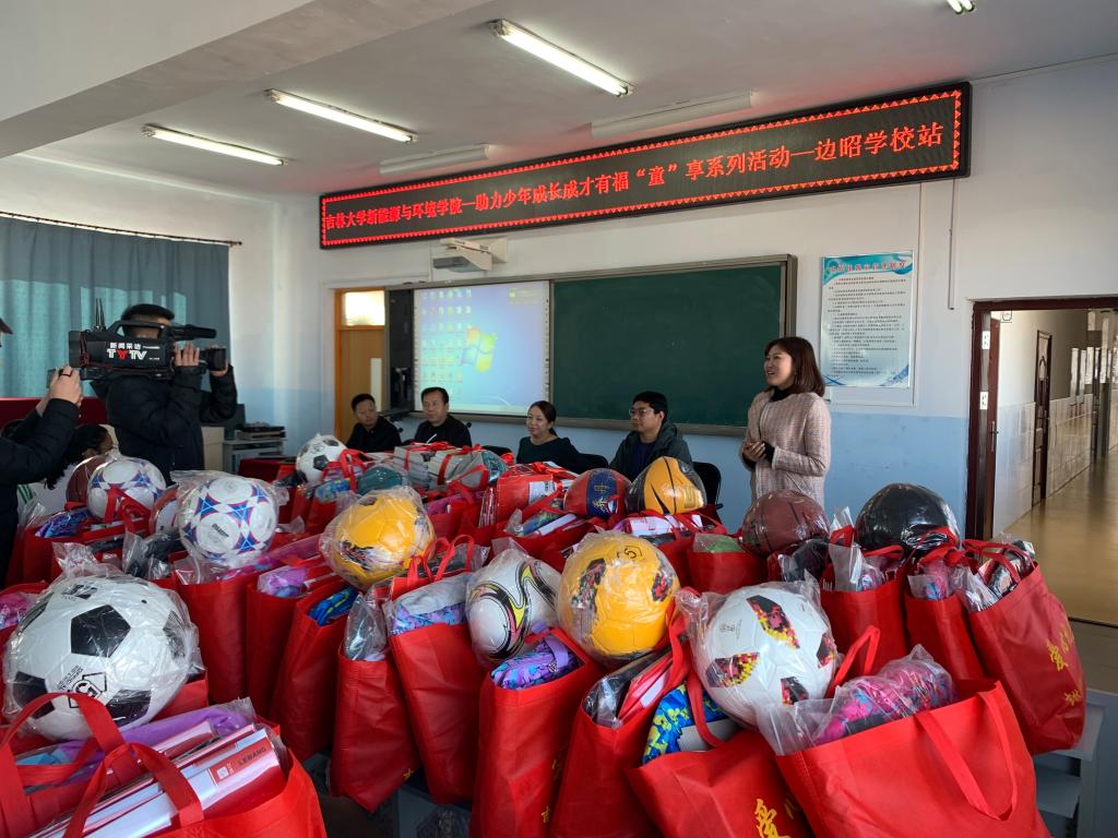 党委副书记兼副院长吴哲、党委副书记温卓和团委书记孟婧莹、环境科学系本科生党支部书记钟宇博带领25位本科生和研究生党员,发挥党员先锋模范作用,深入吉林省通榆县边昭镇开展助力少年成长成才有福“童”享系列活动。本次活动助力青少年健康成长,赠送图书、学习用品、体育用品共计近两万元。