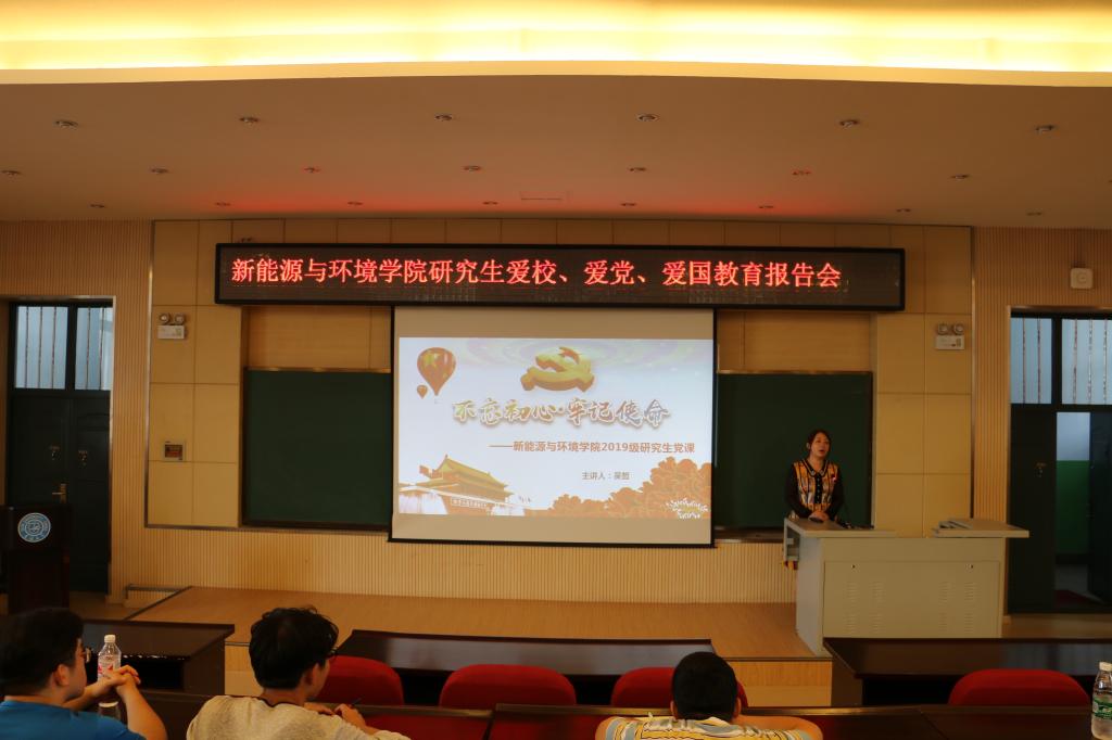 2019年9月6日上午,在北区理一阶报告厅,一色 进行了研究生荣校爱校、党团教育、爱国主义教育的报告会。大会由研究生办公室主任李军老师主持,主管研究生思想政治教育工作的副书记吴哲老师讲解。
