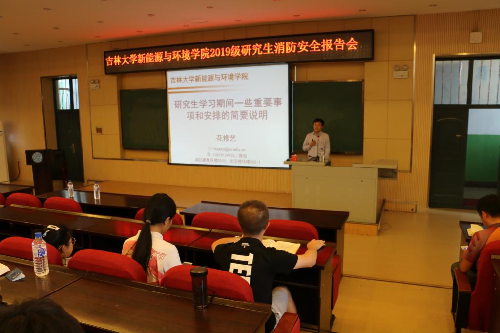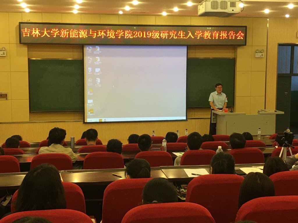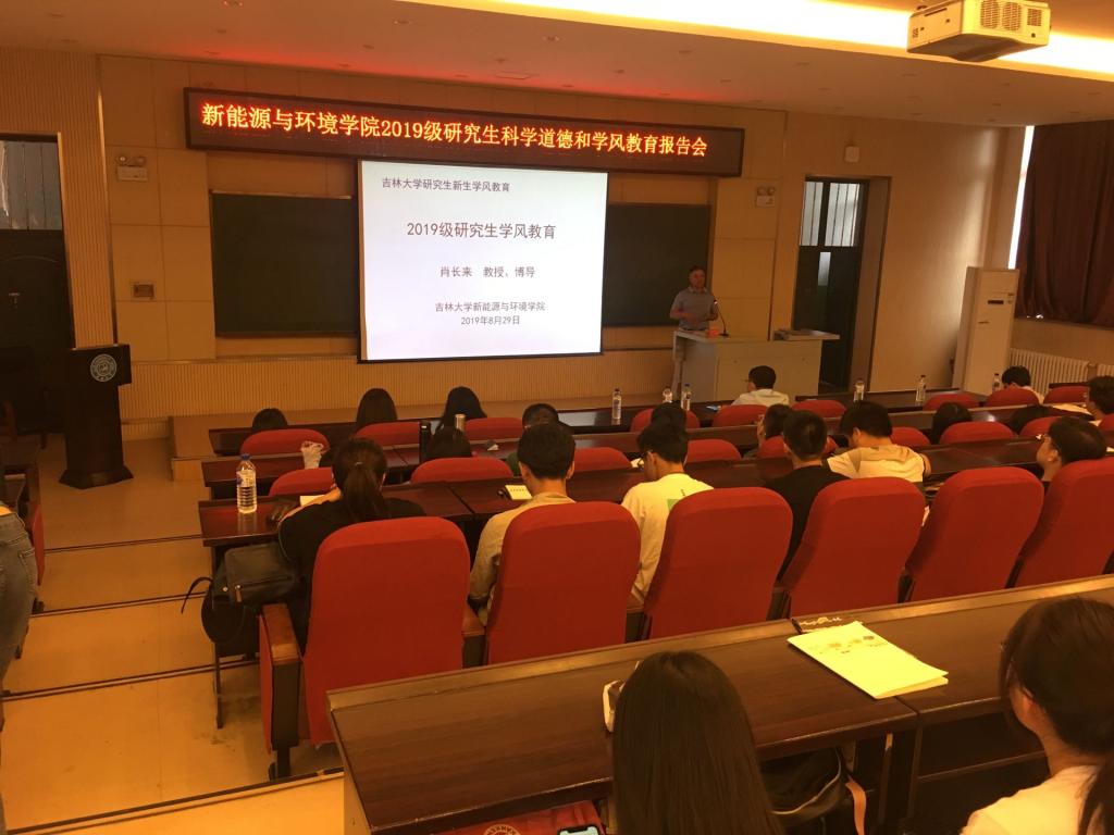 2019级研究生入学教育讲座在理化楼一阶举行。许天福院长、花修艺副院长、肖长来教授等各专业教师代表以及2019级新入学的164名硕士、博士研究生参加了会议。
