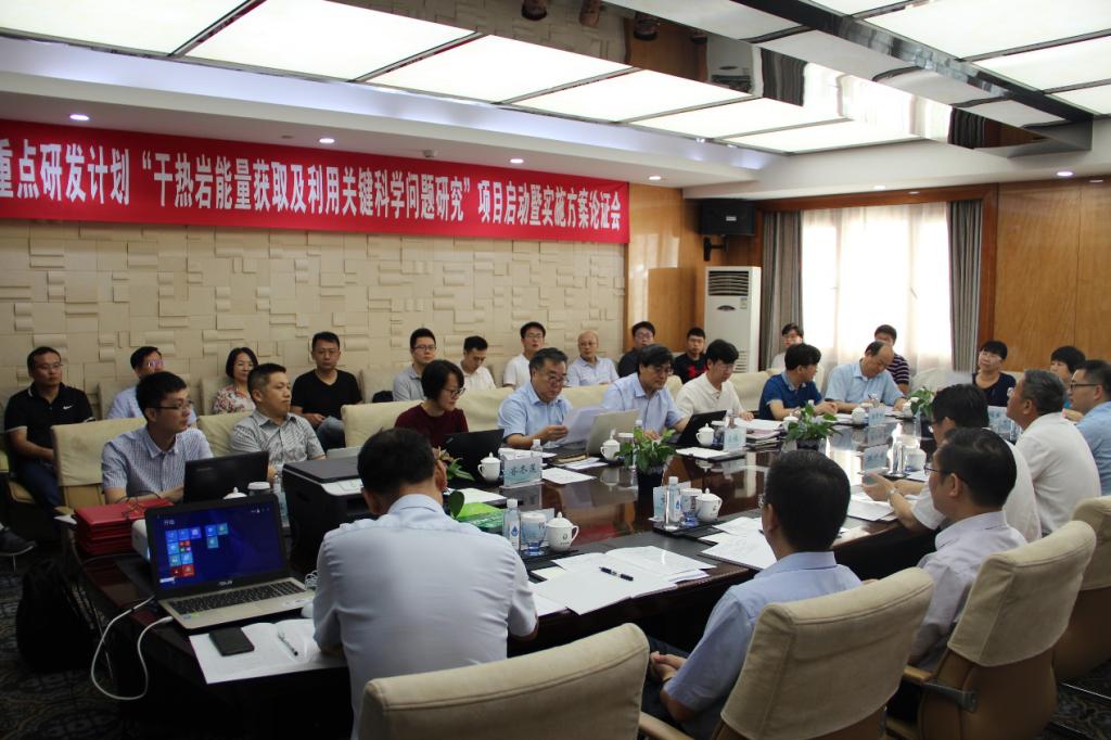 韩晓峰教授致欢迎词,对各位领导、专家的到来表示衷心的感谢并预祝项目执行一切顺利、成功丰硕。随后,项目首席专家许天福教授对国家重点研发计划“干热岩能量获取及利用关键科学问题研究”项目背景与总体情况进行简要介绍,白文翔副处长代表一色