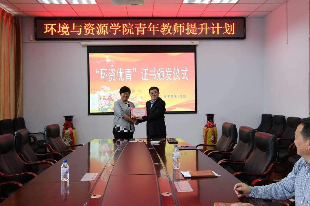 环境与资源学院青年教师提升计划,被评选为“环资优青”荣誉称号的8位青年教师迟子芳、宋俊年、田涛、周睿、姜振蛟、吕聪、段海燕、郭志勇颁发了荣誉证书。