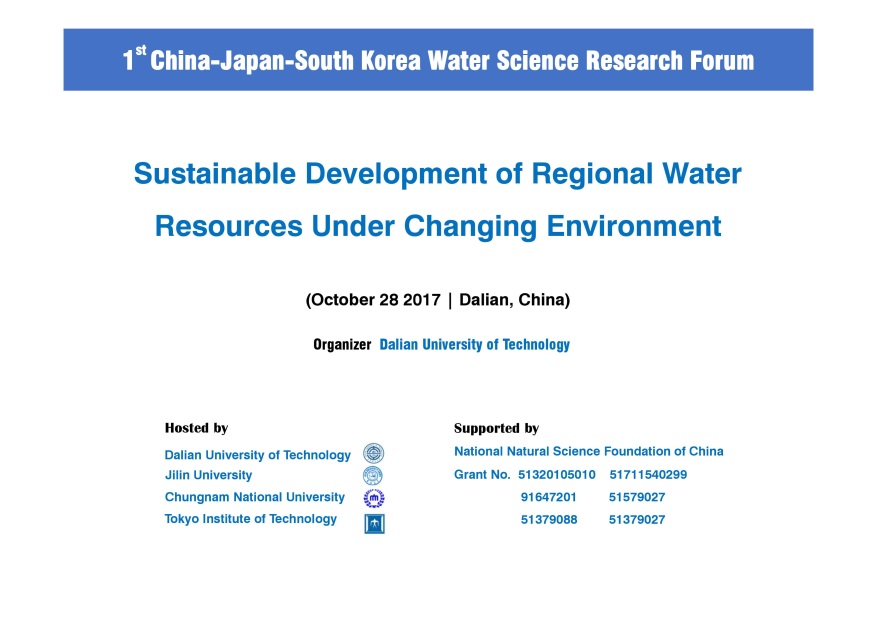 2017年10月28-30日,“第一届中日韩水科学研究论坛”在中国辽宁省大连市召开。本届论坛由大连理工大学、一色