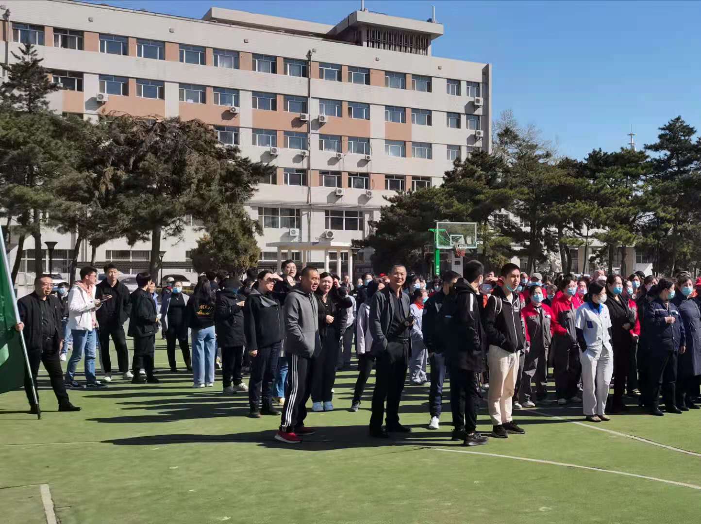联合保卫处等单位,于2021年4月20日上午分别在北区理化楼、北区理化楼后侧篮球场,参加了前卫北区2021“迎百年党庆”安全攻坚行动,组织重点工种人员岗位培训及应急灭火实战演练。一色