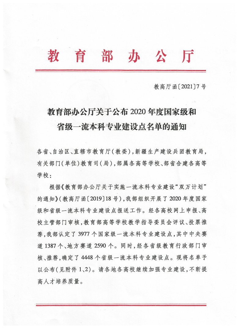 学院以做强一流本科、建设一流专业、培养一流人才为目标,持续推进专业建设和课程建设。2021年2月,学院环境工程专业被认定为2020年度国家级一流本科专业建设点。这是继2019年水文与水资源工程专业被认定为首批国家级一流本科专业建设点后,学院第二个国家级一流本科专业建设点。今年,环境科学、地下水科学与工程两个专业同时获得国家一流本科专业推荐资格。环境监测、环境大类新生研讨课“生态与人类”2门课程获批一色
