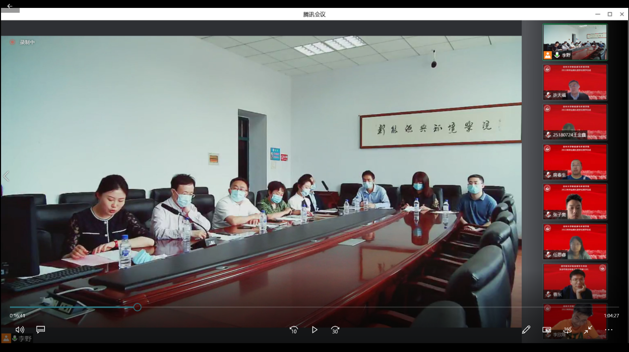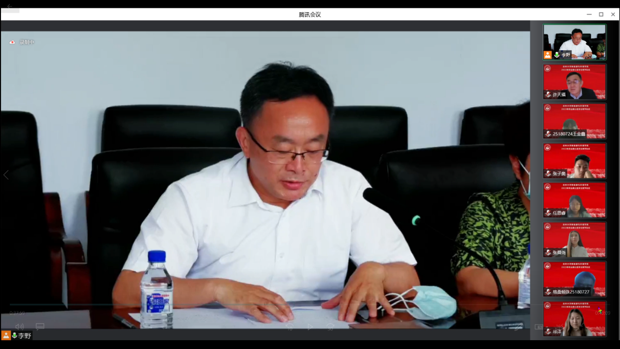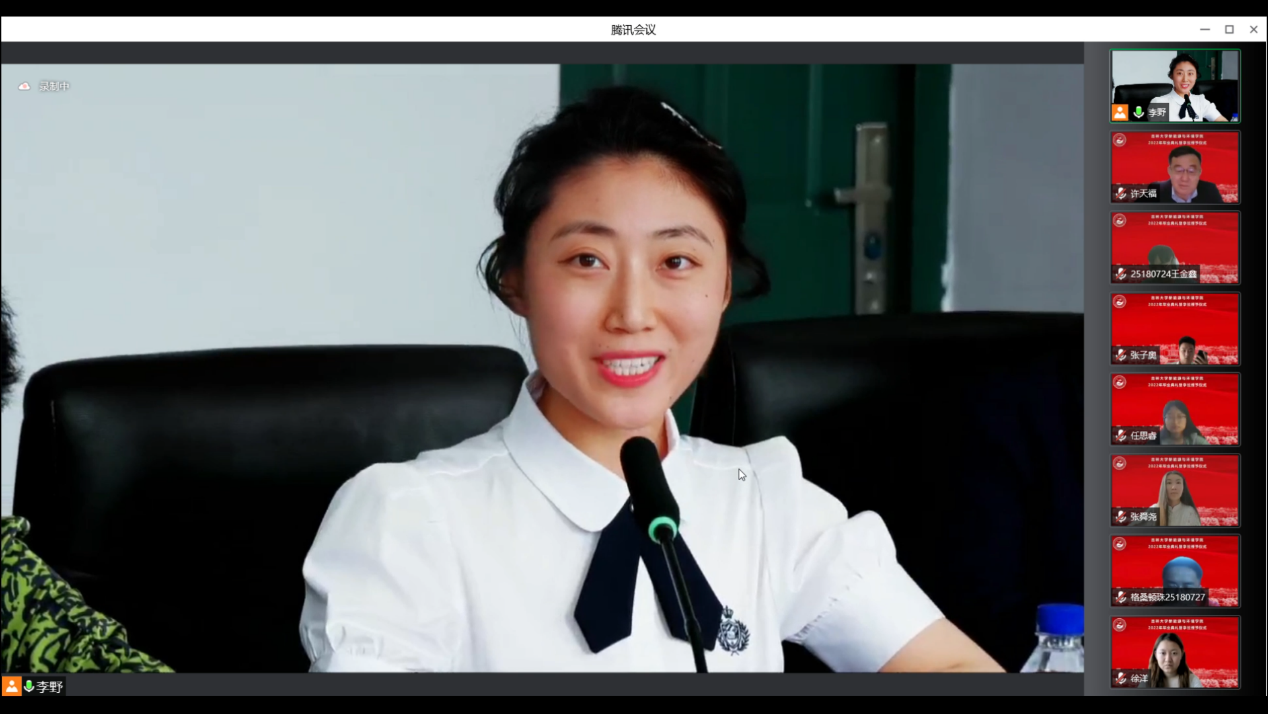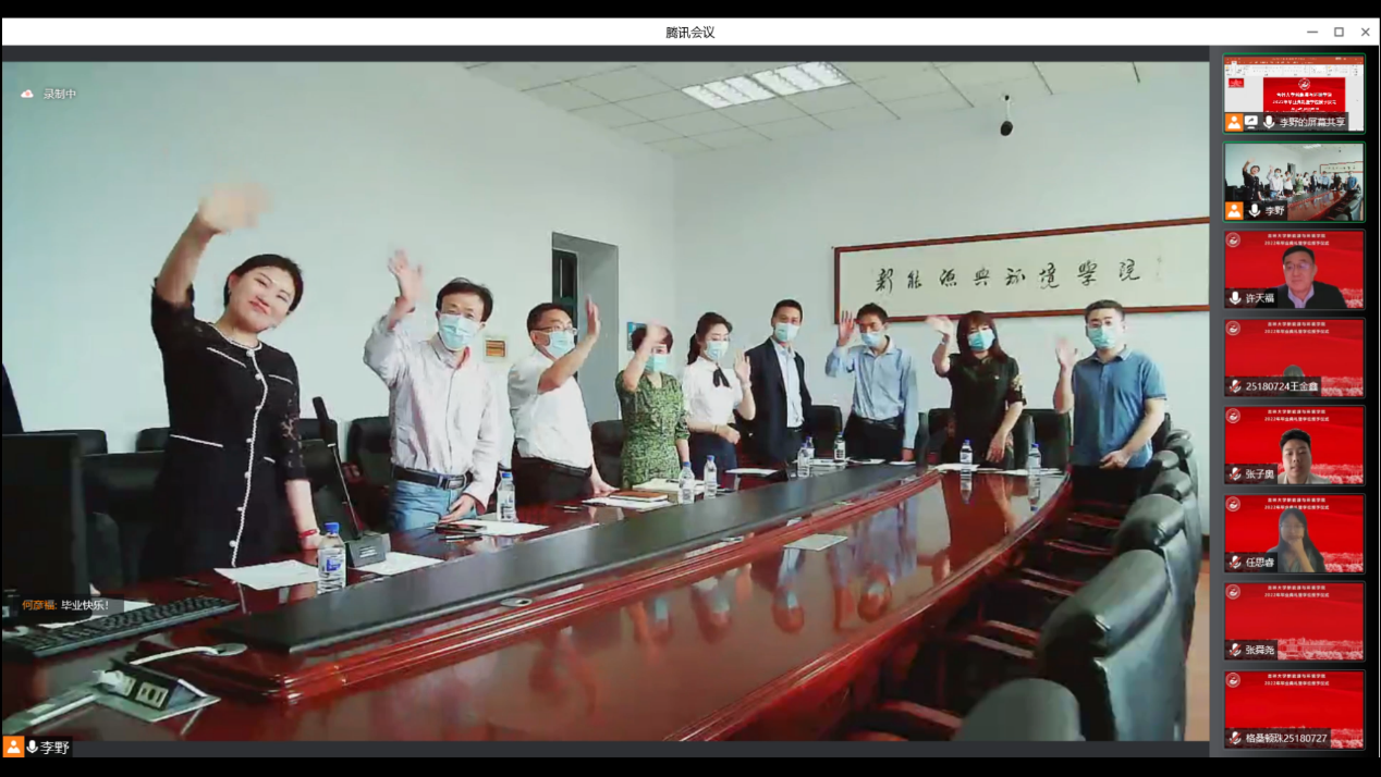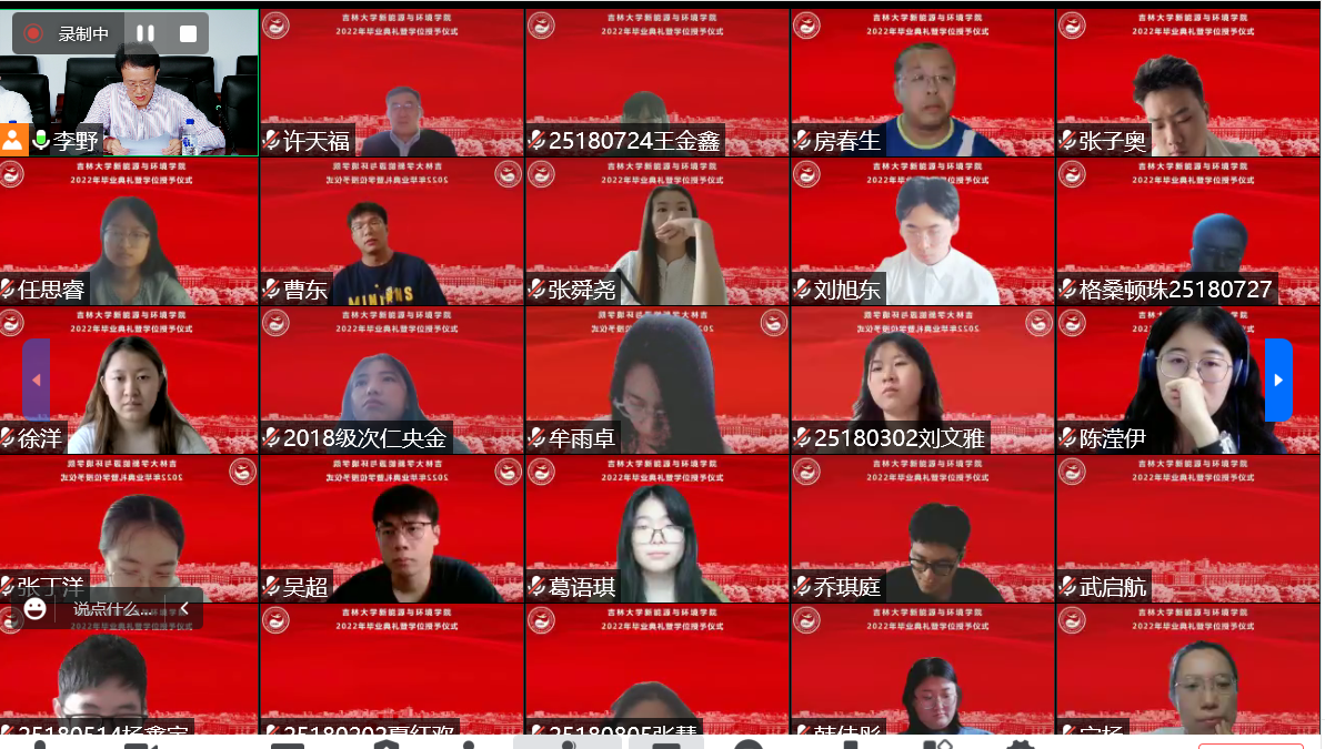 会议开始前,播放了毕业生在校期间的视频和照片,一幅幅照片、一个个镜头、一段段音乐勾起了老师和同学们美好的青春回忆。在师生们的期待与感动中,典礼正式开始。首先,全体起立奏唱《中华人民共和国国歌》。随后,花修艺教授和卞建民教授宣读了学院2022届毕业研究生和本科生名单,并对顺利毕业的同学表示祝贺。接着,同学们期待的学位授予仪式开始了,本次学位授予仪式采用线上制作动图的方式为毕业生拨穗。