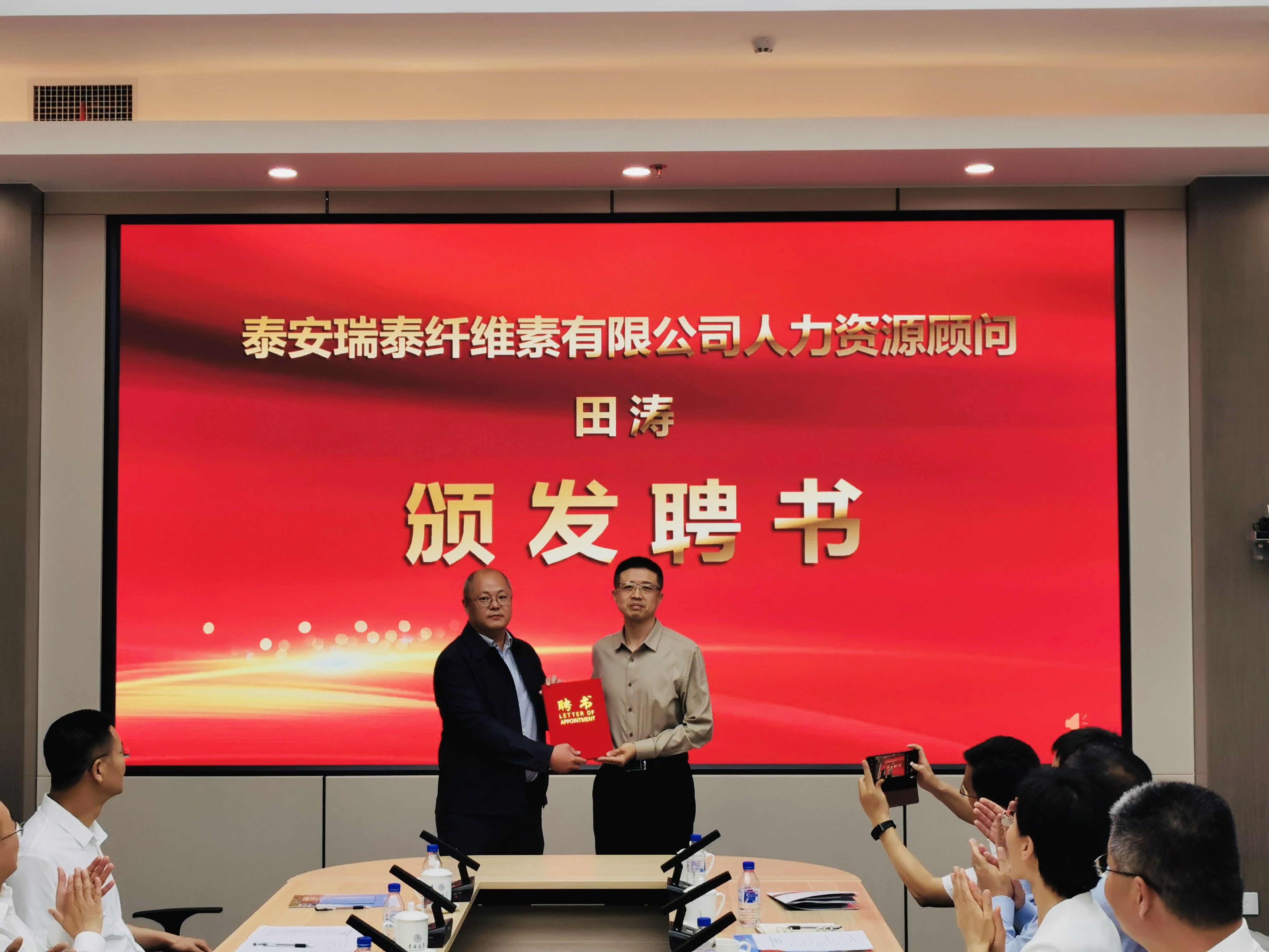 教授田涛颁发人力资源顾问聘书,向一色