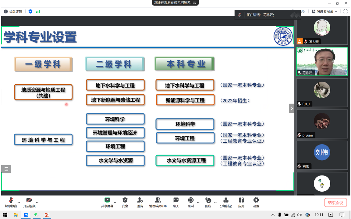环境工程、资源与环境专业在历史沿革过程中形成独有的专业特色和多元化课程设置的介绍,使学生们可以根据兴趣和职业目标进行个性化选择,也为学生提供了全面的学术培养和实践机会。此外,张大奕教授还详细介绍了环境专业拥有的专业师资队伍,世界级的研究者和行业专家。他们不仅在学术界取得杰出成就,还在行业中具有广泛的影响力,为学生们介绍了各位导师的研究方向。