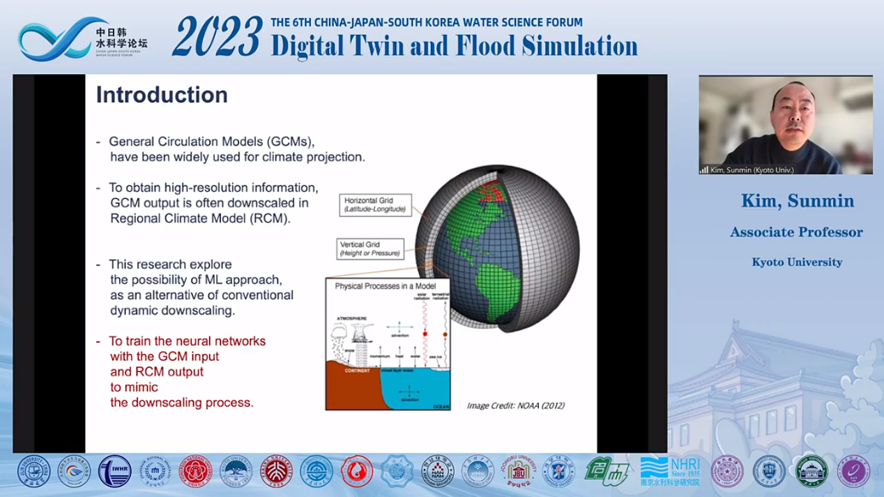 和水利部数字孪生流域重点实验室联合主办,韩国忠南国立大学、韩国庆北国立大学、日本京都大学共同承办,聚焦“数字孪生与洪涝模拟”主题,以线下特邀报告专场和线上全球直播形式召开。参会人员包括中日韩三国高校、科研院所和企事业单位100余位代表(线上、线下),在一色