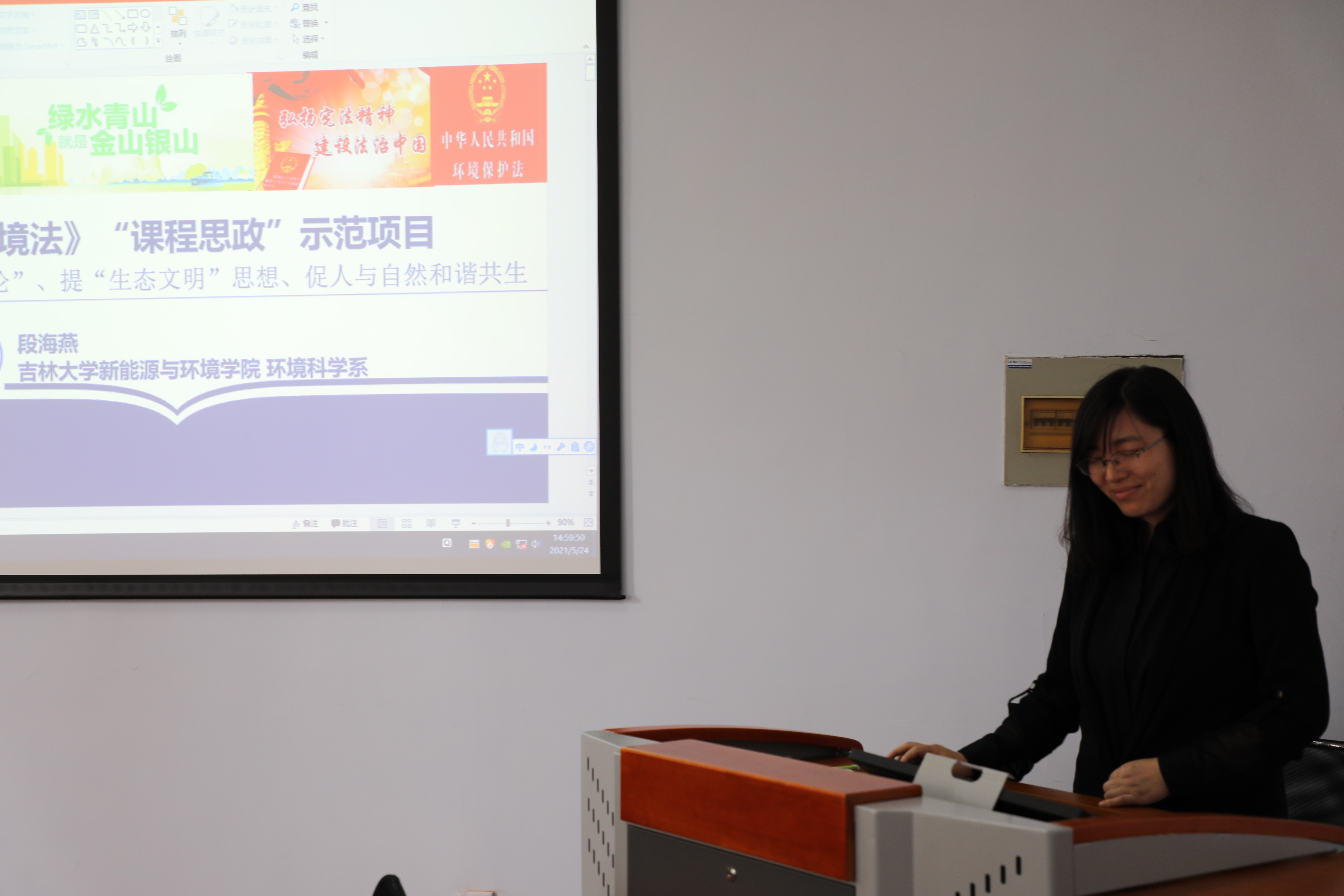包国章、段海燕两位教授分别以《我的课程思政体会》和《我和我的思政课程》为题目进行了经验交流,对思政元素融入课堂所取得的经验进行了分享。